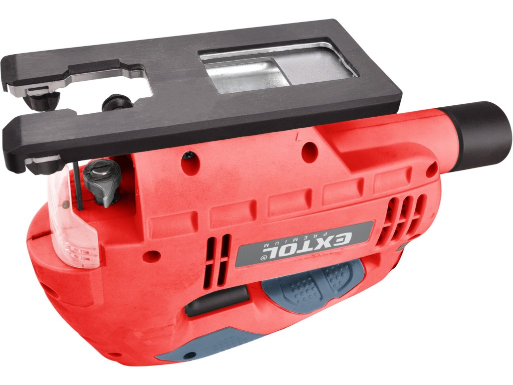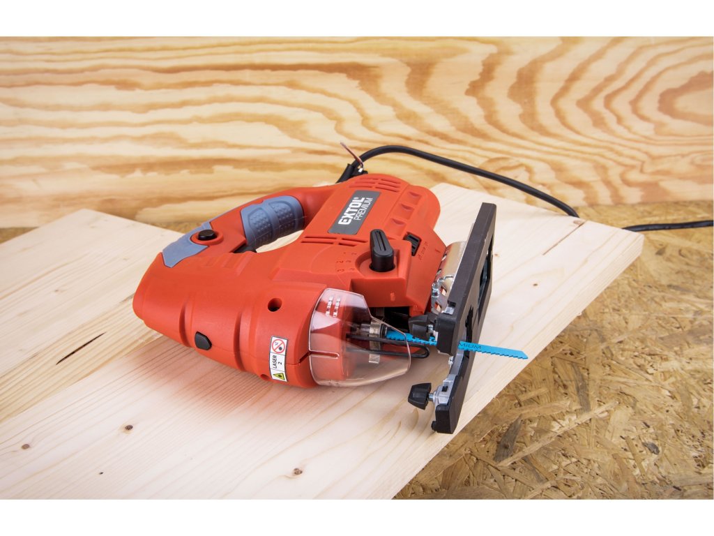 Přímočará pila je určena k provádění dělících a tvarových řezů zejména do dřeva a dřevotřísky, dále také do kovu, umělých hmot, gumy a keramiky s použitím k tomu určených pilových plátků. Pila je vybaven regulací otáček motoru a regulací síly předkmitu pomocí, kterých si můžete upravit chod pily při řezání v různých materiálech. Standartně při řezání pila odfukuje piliny z místa řezání, ale pokud k ní připojíte vysavač, můžete tento odfuk vypnout a piliny jen odsávat do vysavače, čímž dosáhnete mnohem čistějšího pracovního místa. Pro přesnou práci je pila vybavena laserem pro přesné vedení linie řezu a LED světlem pro osvětlení pracovního místa. Podle situace si je může zapnout současně nebo jednotlivě.- čtyři možnosti nastavení předkmitu umožňují optimální přizpůsobení řezné rychlosti a způsobu řezání podle řezaného materiálu