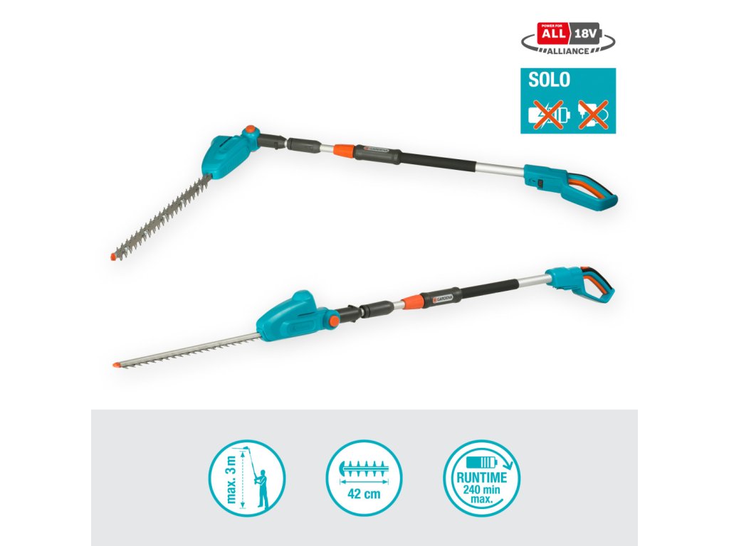 GARDENA akumulátorové teleskopické nůžky na živý plot THS 42/18V P4A bez akumulátoru se dodávají bez akumulátoru a nabíječky. K jejich provozu můžete použít jakýkoliv systémový akumulátor 18 V z Aliance POWER FOR ALL. Tyto akumulátory jsou vhodné pro řadu zařízení určených pro dům a zahradu. Takže ušetříte peníze a zůstanete flexibilní! Nebo upřednostňujete koupi výrobku se systémovým akumulátorem? Ani to není problém - pak je pro vás ta pravá sada k okamžitému použití. Vášeň poháněná značkou GARDENA - zahradní akumulátorové vybavení, které vám poskytuje svobodu při práci.