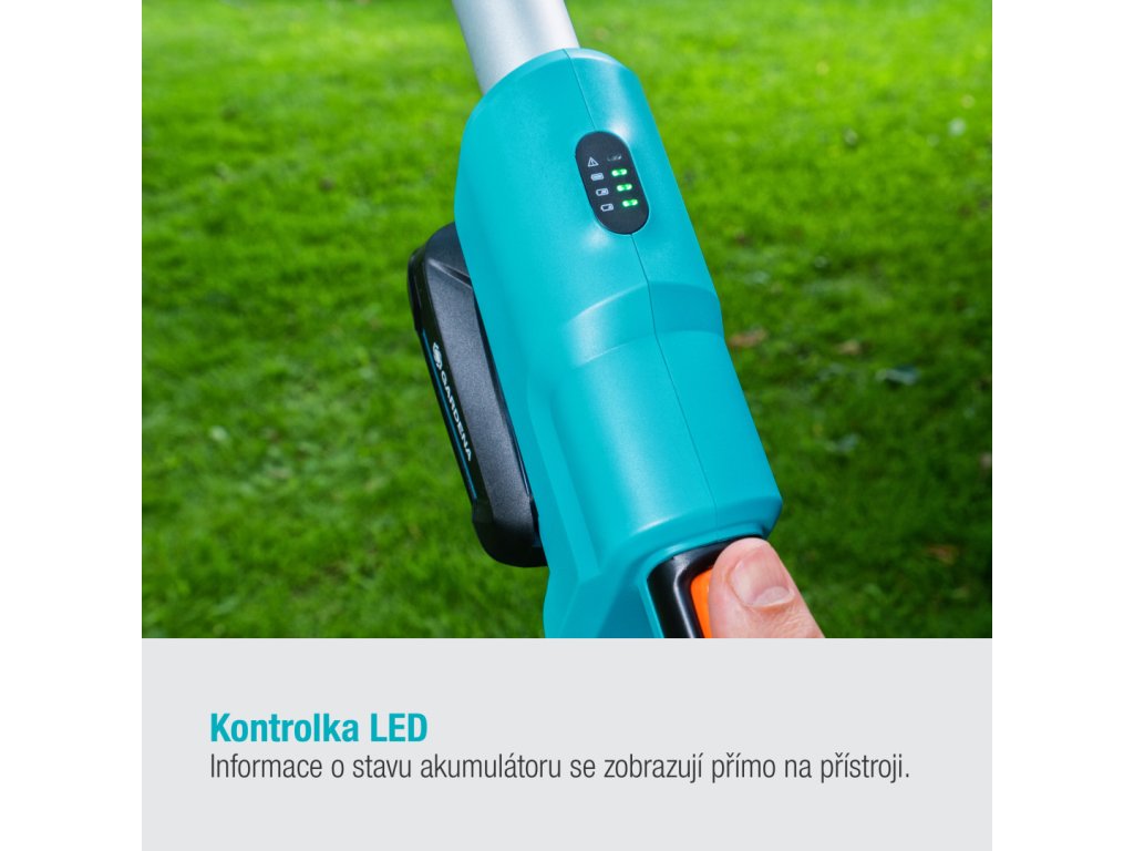 Díky LED indikátoru přímo na rukojeti jste vždy informováni o aktuální úrovni nabití. Tento přístroj je kompatibilní se všemi akumulátory 18V Aliance POWER FOR ALL. V závislosti na použitém akumulátoru může výrobek dosáhnout doby chodu až 240 minut a ostříhat až 600 metrů čtverečních živého plotu.