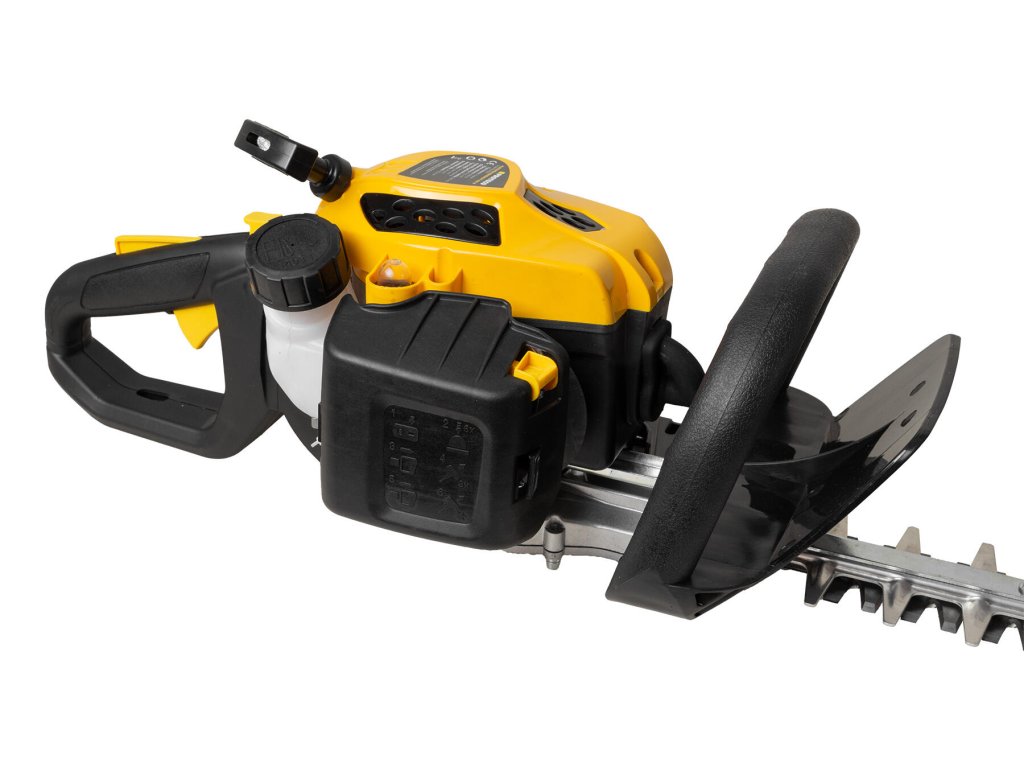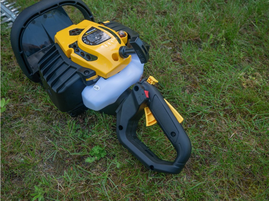 Profesionální nůžky na živý plot PROTECO s jednoválcovým 2-taktním motorem vyladěným pro maximální výkon jsou vhodné pro vášnivé milovníky zahrad, kteří chtějí dosáhnout perfektního vzhledu svých živých plotů, keřů či tújí. Díky nezávislosti na elektrickém přívodu se můžete volně pohybovat po zahradě bez omezení, ať už se jedná o menší nebo větší zahradní plochy. Precizně broušená oboustranná čepel Středobodem stroje je laserem vyřezávaná a diamantem broušená oboustranná čepel o délce 550 mm, která dosahuje přesného a rychlého střihu a je tak ideální pro efektivní a rychlé stříhání středně velkých a velkých živých plotů, keřů či tújí. S rozestupem mezi noži 28 mm si snadno poradí i s masivnějšími větvemi a zajišťuje tak přesné a dokonalé střihy. ANTIVIBRAČNÍ SYSTÉM Nůžky jsou vybaveny antivibračním systémem v podobě pryžových tlumičů, které tlumí vibrace silného motoru a zajišťují tak větší komfort a snižují únavu rukou při dlouhodobé práci se strojem. Otočná rukojeť pro práci (nejen) v horizontální i vertikální poloze Otočná rukojeť je vybavena aretací v 5 polohách v rozsahu 180°. Tato vlastnost poskytuje maximální flexibilitu a umožňuje vám přizpůsobit rukojeť podle vašich preferencí a potřeb. Jednoduchá manipulace Díky své optimalizované váze necelých 5 kg jsou tyto nůžky snadno ovladatelné a umožňují pohodlné stříhání bez zbytečného namáhání. Ergonomický design je navržen tak, aby vám poskytl pohodlí i při dlouhodobém používán. Výhody a charakteristické znaky: - Vhodné i k profesionálnímu použití - Antivibrační rukojeť s pryžovými tlumiči pro komfortní práci - Délka čepele 550 mm - Oboustranná laserem vyřezávaná a diamantem broušené čepel pro precizní přesnost střihu - Rozestup mezi noži 28 mm pro stříhání masivnějších větví - Nastavitelná zadní rukojeť (180°) s aretací v 5 polohách (horizontální -> vertikální střih) - Hmotnost cca 4,6 kg Specifikace motoru: - Efektivní 2-taktní jednoválcový motor - Výkon motoru: 650 W, 3000 ot./min. - Objem palivové nádrže: 240 ml - Pohon: Směs benzínu (Natural 95) obohaceného o olej pro 2-taktní motory v poměru 40:1.Při platbě penězi je možné dostat zajímavou nabídku neboli akční cenu a tu Vám rádi uděláme když napíšete na info@megabike-cyklo.cz