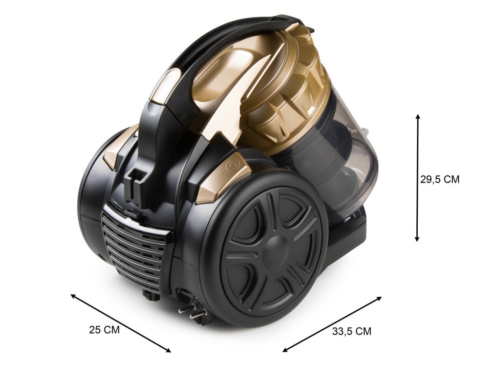 Nejmodernější cyklónový způsob vysávání zaručuje vynikající výsledky a stálý výkon sání až do plné kapacity prachové nádoby. Navíc v každém balení najdete bohaté příslušenství včetně klasické podlahové hubice a parketové hubice na tvrdé podlahy. Velký operační rádius zajištuje extra dlouhý přívodní kabel o délce 6 m v kombinaci s 190 cm dlouhou sací hadicí a až na 94 cm vysunutelnou teleskopickou trubicí s 25 cm dlouhou tvarovanou rukojetí.Stálý sací výkon díky modernímu cyklónovému systému