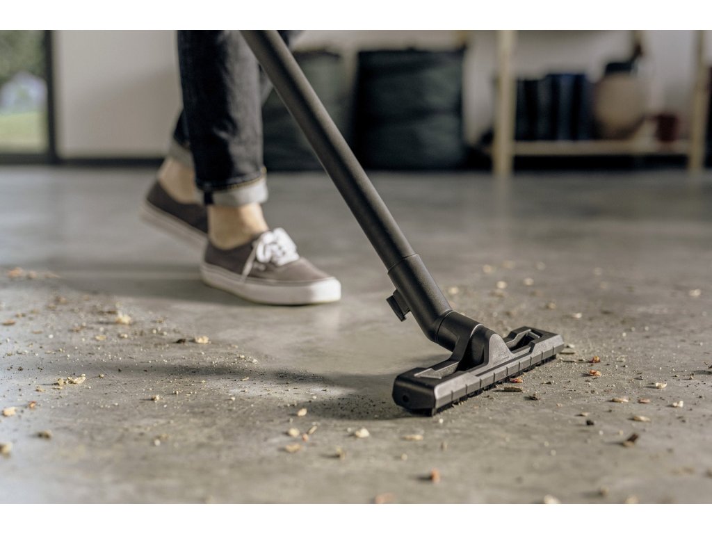 2,2metrovou sací hadicí, klipovou podlahovou hubicí, plochým skládaným filtrem a vliesovým filtračním sáčkem. Díky patentované technologii lze filtr ve vysavači na mokré a suché vysávání snadno a rychle během
