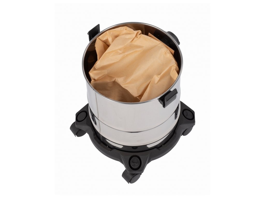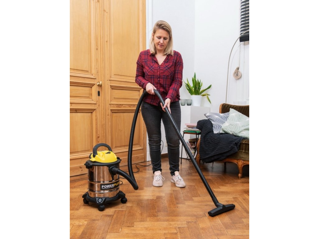 Vysavač sucho/mokro 1 000 WTento vysavač POWX322 na suché a mokré vysávání od společnosti Powerplus rychle a efektivně odstraňuje prach a kapaliny. Má také funkci foukání, která vám pomůže odstranit listy a nečistoty z terasy. Díky nádrži z nerezové oceli o objemu 15 l a motoru o výkonu 1 000 W má vysavač dostatečný výkon k čištění i tvrdých nečistot. Třídílná trubice umožňuje snadné čištění těžko přístupných míst. Podlahová hubice umožňuje vysávat všechny podlahy bez poškrábání a pomocí kartáčové hubice 2 v 1 můžete vysát nábytek, podlahových lišt a rohy od prachu a nečistot.Technická specifikace:Napětí - 220 - 240V / 50HzPříkon - 1.000 WObjem nádoby - 15 LSací výkon - 16 KpaDélka hadice - 1,5 mDélka el. kabelu - 3,5 mHmotnost - 3,8 kgVlastnosti:Nerezová nádobaSystém sáníSystém foukáníSuché / mokré vysáváníMůže být použit s nebo bez prachového sáčkuDržadlo pro snadné přenášeníKolečka pro snadnou manipulaciObsah balení:1x Vysavač1x ohebná hadice 1,5 m3x plastová trubka1x hubice se štěrbinou / hubice na čalounění1x kartáč na podlahu na suché / mokré vysáváníDoplňkové parametry