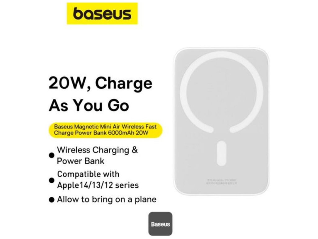 Baseus Magnetic Mini Air 6000mAh, 20W bílá Nevíte kde uplatnit Benefity obecně, zeptej se info@megabike-cyklo.cz