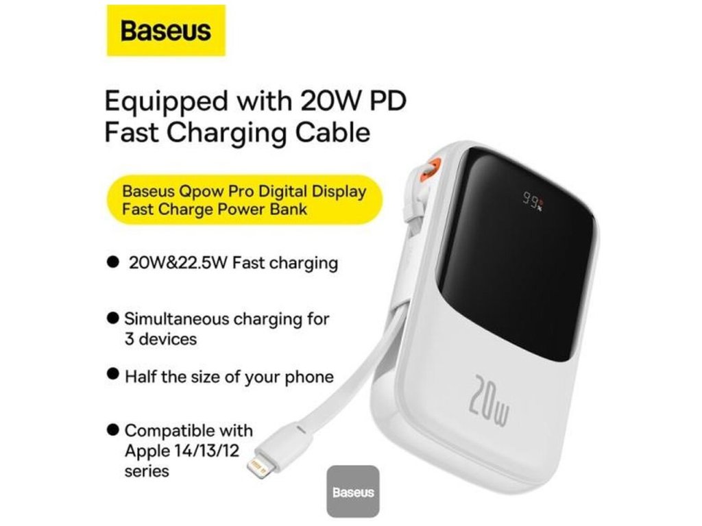 Baseus Qpow Pro 10000mAh, 20W, s kabelem Lightning bílá Nevíte kde uplatnit Benefity obecně, zeptej se info@megabike-cyklo.cz