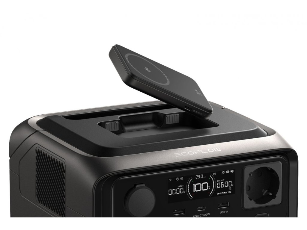 EcoFlow RIVER 3 Max Plus Wireless je verzí bateriové stanice RIVER 3 Plus, která je v této formě doplněná o přídavnou baterii EB600 a magnetickou powerbanku RAPID (5000 mAh). Celková spojená kapacita kompletu tím dosáhne až na hodnotu 858 Wh a k tomu ještě 5000 mAh powerbanky pro další využití. Stejně jako ostatní stanice řady RIVER 3 obsahuje pokročilou technologii X-GaNPower, která minimalizuje tepelné ztráty, což stanicím umožňuje konstrukci malých rozměrů, avšak s vysokou účinností nabíjení a tichým provozem. RIVER 3 Max Plus Wireless nabízí rovněž profesionální UPS s rychlostí přepnutí do 10 ms.Bateriová stanice RIVER 3 Max Plus Wireless v sobě spojuje bateriovou stanici RIVER 3 Plus, přídavnou baterii EB600 a magnetickou powerbanku RAPID (5000 mAh). Stanice a přídavná baterie představují spojenou kapacitu k napájení běžných spotřebičů, samostatně použitelná powerbanka nabízí bezdrátové i klasické napájení přenosných zařízení.