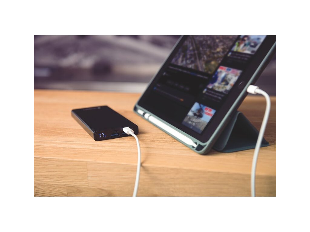 Power banka GoGEN PB 100008 zaujme na první pohled hliníkovým provedením a nabíjecím výkonem. Díky kompaktním rozměrům a kapacitě 10.000 mAh můžete pohodlně využívat tento zdroj záložní energie i na delších cestách.Zbývající kapacita v procentech je zobrazována na displeji.
