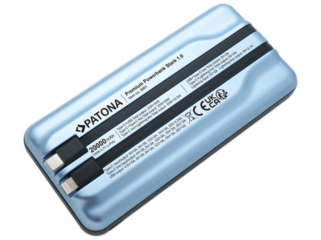 PATONA powerbanka, 20 000mAh Li-Pol 3A, USB-C/Lightning, PD 65W, modrá Nevíte kde uplatnit Benefity obecně, zeptej se info@megabike-cyklo.cz