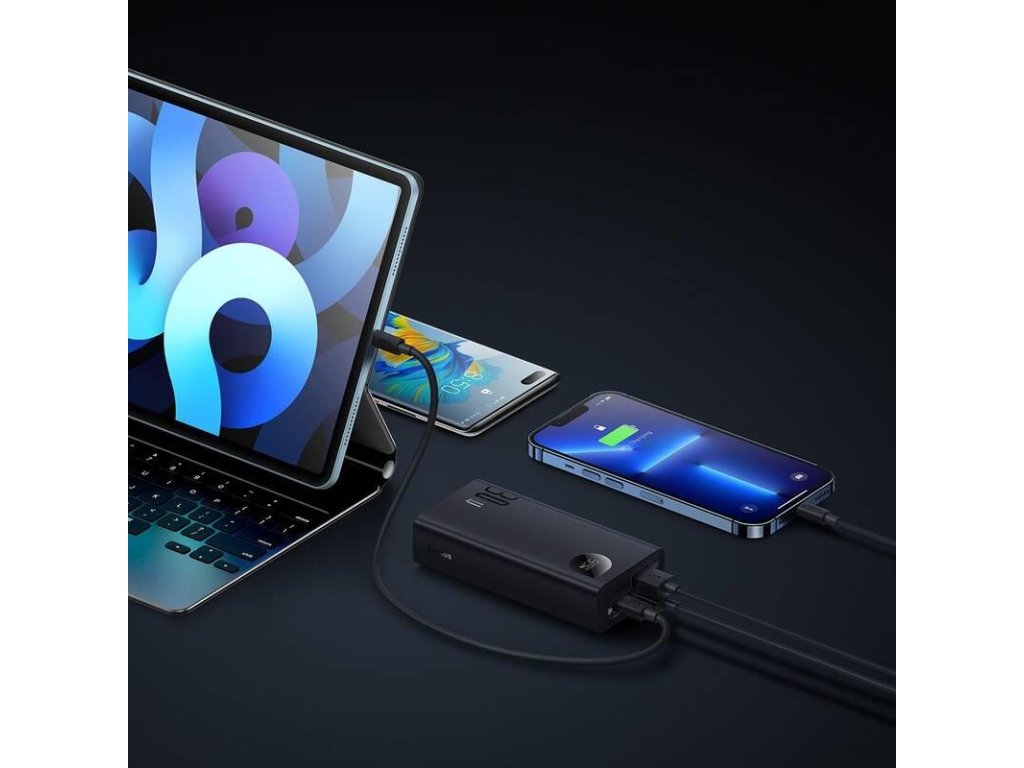 Zažijte, jak rychle mohou být vaše zařízení znovu připravena k použití. Powerbanka Baseus Adaman2 podporuje rychlé nabíjení PD 30W (na portu USB-C), takže může v krátké době obnovit napájení různých zařízení Apple. Například nabíjení MacBooku Air na 48% trvá přibližně 55 minut a iPad Pro můžete nabít na 100% za přibližně 110 minut. A co víc, USB porty powerbank umožňují rychlé nabíjení s 22,5 W výkonem a standardy podpory, jako jsou PD, QC, SCP, FCP a AFC. Výsledkem je, že produkt může také nabíjet Xiaomi, Samsung smartphony a další v krátké době.