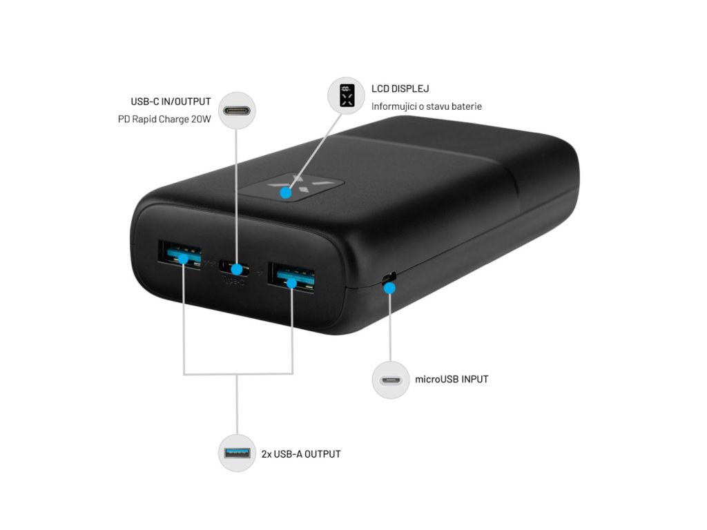 - rychlé dobíjení powerbanky pomocí microUSB/USB-C portu