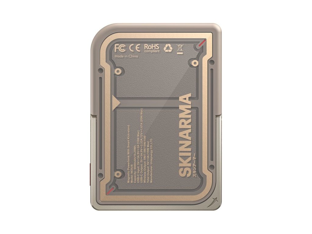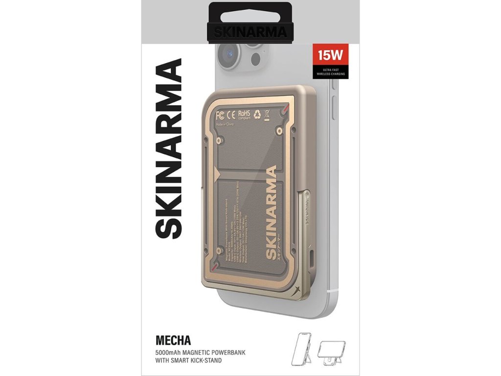 SKINARMA Nexus Mecha MagSafe powerbanka se stojánkem, USB-C, PD (5000 mah) zlatá Nevíte kde uplatnit Benefity obecně, zeptej se info@megabike-cyklo.cz