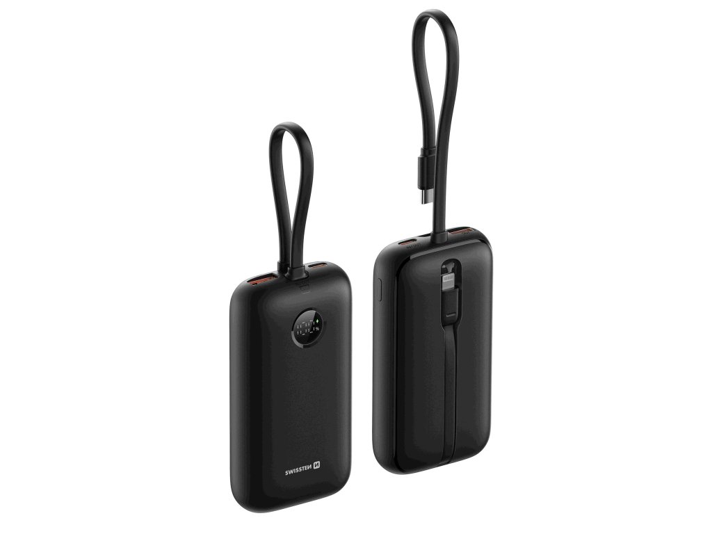 Hledáte kvalitní kompaktní power banku, díky které již nebudete muset řešit žádné kabely? Našli jste správně! SWISSTEN POWER BANK VOLTBOX 35W 10,000 mAh je výkonná powerbanka navržená pro moderní uživatele, kteří potřebují nabíjet více zařízení současně. Je vybavena integrovanými kabely USB-C a Lightning, což eliminuje potřebu nosit samostatné kabely.