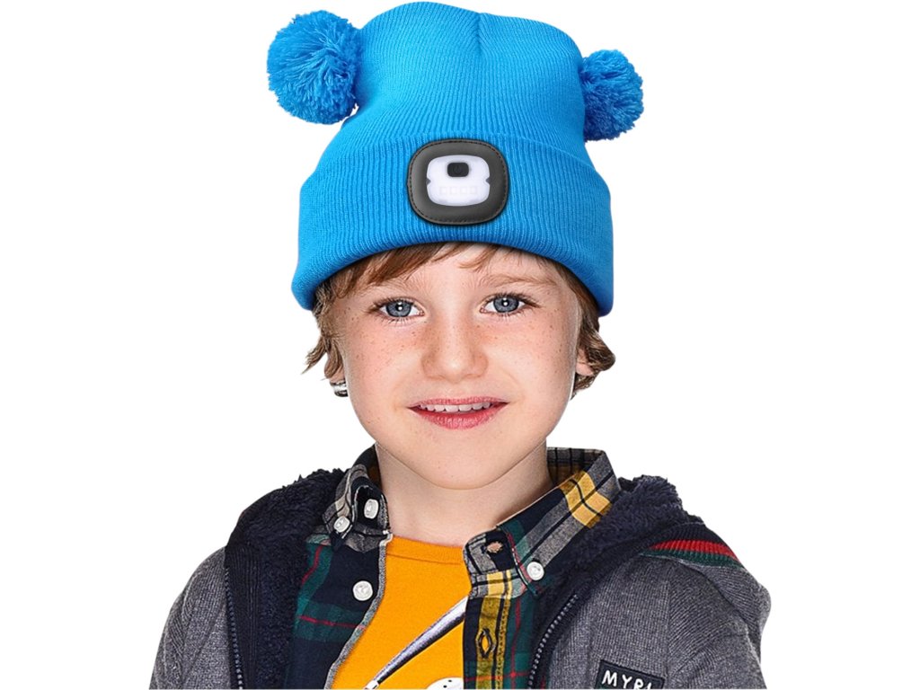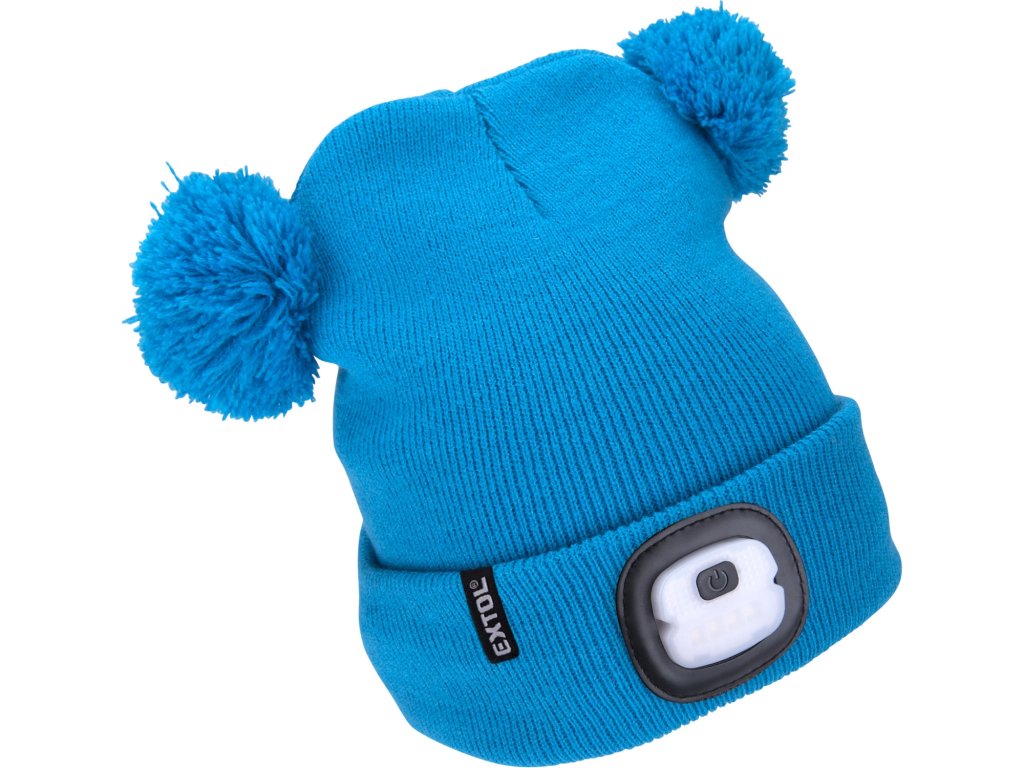 čepice s čelovkou 4x25lm, USB nabíjení, modrá s bambulemi, dětská Nevíte kde uplatnit Benefity obecně, zeptej se info@megabike-cyklo.cz