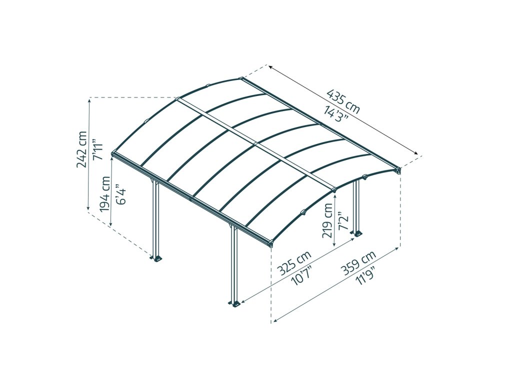 Arcadia 4300 - hliníkový (montovaný) přístřešek s obloukovou střechou Moderní, prostorný a elegantní přístřešek, který díky chytré technologii společnosti Palram zvládnete postavit sami během jediného dne. V podstatě nezničitelná konstrukce z hliníkových profi 80 x 80 mm a silného dvoukomůrkového polykarbonátu se 100% UV ochranou Elegantní design, bohatě dimenzovaná šířka pro snadný přístup Střešní panely odolné vůči vysokému zatížení i kroupám, polykarbonát v bronzové barvě Unikátní systém nasunutí střešních panelů bez dalšího spojovacího materiálu – dokonalá těsnost, jednoduchá montáž a netečnost k teplotní roztažnosti panelů Hliníkový rám s galvanicky ošetřenými kovovými prvky je ošetřen antracitovou práškovou barvou a je vysoce odolný vůči rezavění. Možno vybavit LED osvětlením. Díky přehlednému manuálu a jedinečné konstrukci stavba nevyžaduje více než 2 osoby Široký a vysoký vstup pro bezpečný a snadný průchod Snadná montáž Montáž zvládnou pohodlně dvě osoby během jednoho dne Žádné těžké díly na manipulaci Přehledný návod Vás provede montáží krok po kroku Všechny spojovací prvky součástí dodávky V případě potřeby se dá přístřešek snadno rozmontovat a umístit na jiné místo Pevná a odolná konstrukce 100% UV ochrana - proti žloutnutí a křehnutí střešních panelů Přístřešek nevyžaduje další údržbu Snadné čištění myčkou nebo jen deštěm Skvělý přístřešek nejen pro parkování, ale i pro hřiště, odpočinkové posezení apod Chrání automobil před deštěm, sněhem, UV zářením, kroupami či padajícím listím Integrované okapy dovolí bezpečně zachytávat a odvádět vodu K dostání v uvedených variantách: Arcadia 4300, Arcadia 5000, Arcadia 6400, Arcadia 8500Při platbě penězi je možné dostat zajímavou nabídku neboli akční cenu a tu Vám rádi uděláme když napíšete na info@megabike-cyklo.cz