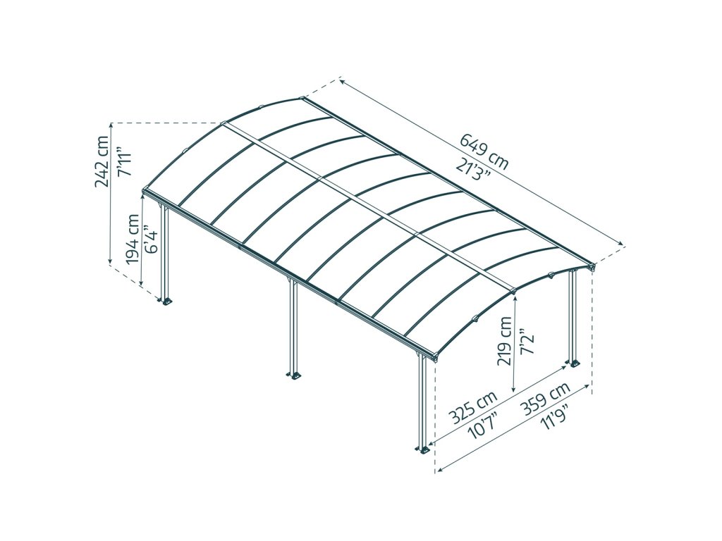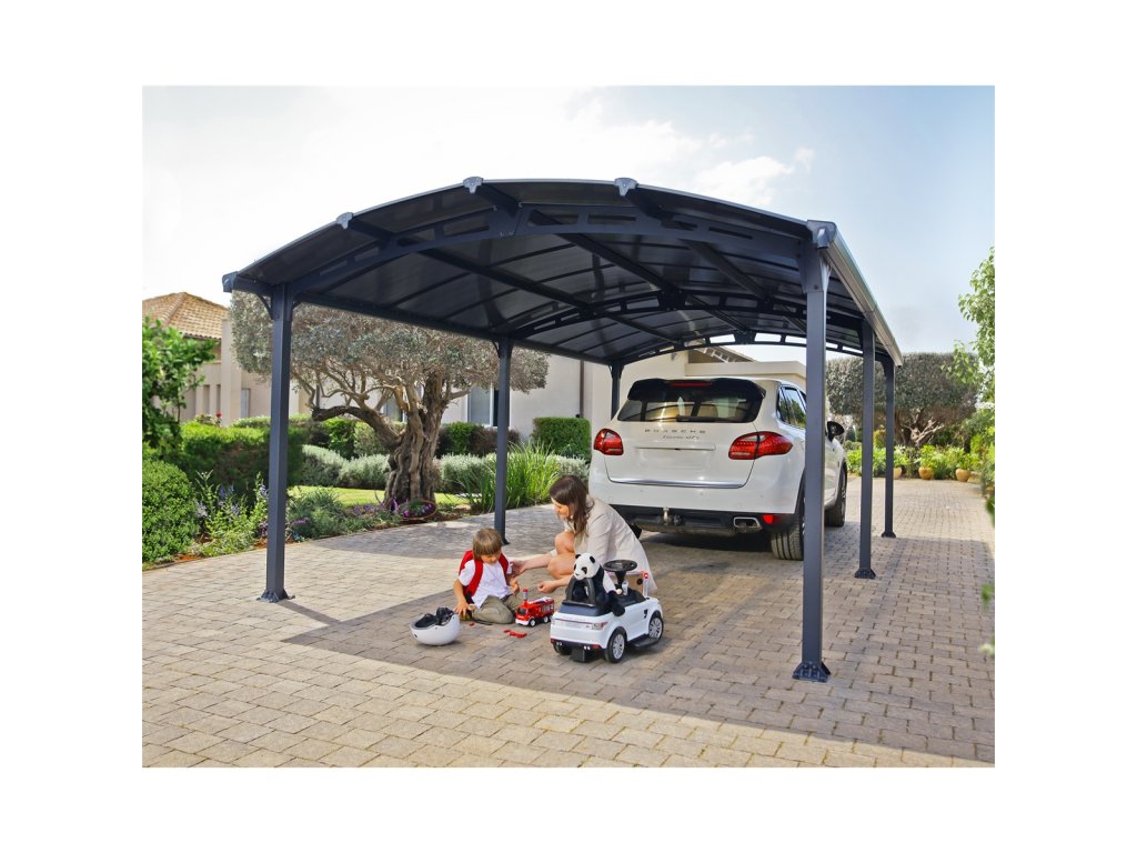 Arcadia 6400 - hliníkový (montovaný) přístřešek s obloukovou střechou Moderní, prostorný a elegantní přístřešek, který díky chytré technologii společnosti Palram zvládnete postavit sami během jediného dne. V podstatě nezničitelná konstrukce z hliníkových profi 80 x 80 mm a silného dvoukomůrkového polykarbonátu se 100% UV ochranou Elegantní design, bohatě dimenzovaná šířka pro snadný přístup Střešní panely odolné vůči vysokému zatížení i kroupám, polykarbonát v bronzové barvě Unikátní systém nasunutí střešních panelů bez dalšího spojovacího materiálu – dokonalá těsnost, jednoduchá montáž a netečnost k teplotní roztažnosti panelů Hliníkový rám s galvanicky ošetřenými kovovými prvky je ošetřen antracitovou práškovou barvou a je vysoce odolný vůči rezavění. Možno vybavit LED osvětlením. Díky přehlednému manuálu a jedinečné konstrukci stavba nevyžaduje více než 2 osoby Široký a vysoký vstup pro bezpečný a snadný průchod Snadná montáž Montáž zvládnou pohodlně dvě osoby během jednoho dne Žádné těžké díly na manipulaci Přehledný návod Vás provede montáží krok po kroku Všechny spojovací prvky součástí dodávky V případě potřeby se dá přístřešek snadno rozmontovat a umístit na jiné místo Pevná a odolná konstrukce 100% UV ochrana - proti žloutnutí a křehnutí střešních panelů Přístřešek nevyžaduje další údržbu Snadné čištění myčkou nebo jen deštěm Skvělý přístřešek nejen pro parkování, ale i pro hřiště, odpočinkové posezení apod Chrání automobil před deštěm, sněhem, UV zářením, kroupami či padajícím listím Integrované okapy dovolí bezpečně zachytávat a odvádět vodu K dostání v uvedených variantách: Arcadia 4300, Arcadia 5000, Arcadia 6400, Arcadia 8500Při platbě penězi je možné dostat zajímavou nabídku neboli akční cenu a tu Vám rádi uděláme když napíšete na info@megabike-cyklo.cz