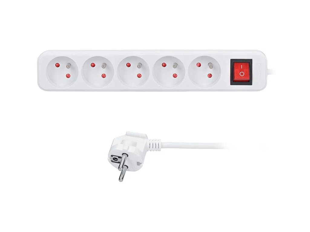 Solight prodlužovací přívod, 5 zásuvek, bílý, vypínač, 1,5m Nevíte kde uplatnit Benefity obecně, zeptej se info@megabike-cyklo.cz