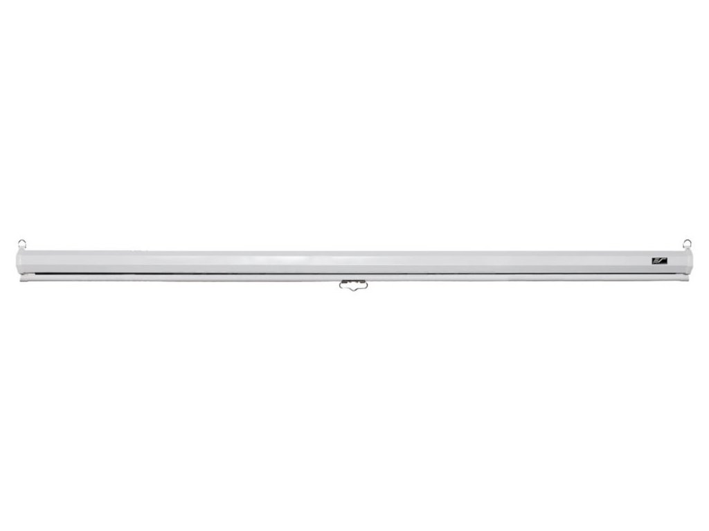 Elite Screens M119XWS1Manuální plátno typu roleta s úhlopříčkou 119" a bílou konstrukcí. Vhodné pro projektory se standardní projekční vzdáleností.