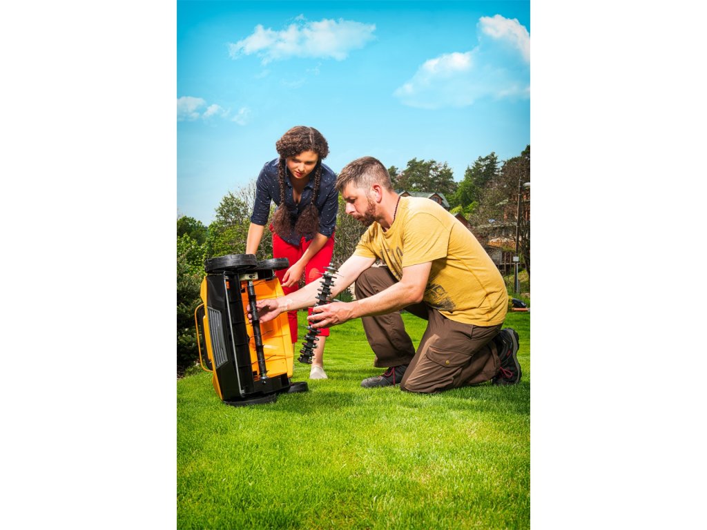 REV 3816 - travní provzdušňovač s elektrickým motorem combi 3 v 1 užitečný pomocník pro ty, kdo chtějí zdravý, hustý a krásně zelený trávník výkonný motor 1600 W si poradí i s hustou a dlouho neudržovanou trávou záběr 38 cm je vhodný na pozemky s rozlohou do cca 1000 m2 velká přední kola pro snadný pojezd i po nerovném terénu snadné přestavění hloubky záběru jednou pákou velký sběrací koš ve standardu má široký výstupní otvor a madlo pro snadné vysypávání široký výhozový tunel stroj je vybaven dvěma snadno vyměnitelnými válci – válcem s drátky na vyčesání staré trávy, plevelů, mechů apod. a válcem s noži, který navíc profrézuje půdu ještě více do hloubky uložení válců v ložiskách snadná výměna válců povolením jednoho šroubu nástroj na povolení válce má integrovaný držák přímo na stroji, takže je vždy po ruce velké madlo pro snadné přenášení složitelná řídítka pro snadný transport bezpečnostní spínač a držák el. kabelu Podmínky prodloužené záruky naleznete zde. Případné bezpečnostní pokyny, výstrahy a upozornění jsou součástí návodu k obsluze, který je k dispozici v sekci KE STAŽENÍ. Kontaktní údaje výrobce / dovozce / zplnomocněného zástupce výrobce v EU: GARLAND distributor, s.r.o. Šturmova 1307, 50601 Jičín, Czech Republic email: garland@garland.czPři platbě penězi je možné dostat zajímavou nabídku neboli akční cenu a tu Vám rádi uděláme když napíšete na info@megabike-cyklo.cz