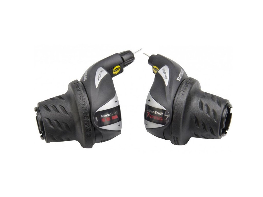 • otočné řadíci jednotky SHIMANO řady Tourney Revoshift RS36 7x3 rychlostí (levá index / 7 rychlostní index pravá jednotka)• indikátor řazení pravé jednotky