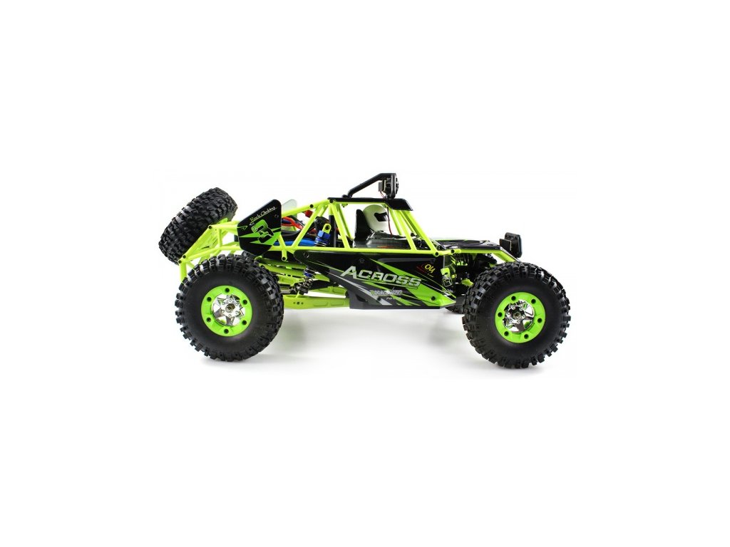 RC model buggy do terénuAcross-3 buggy 4x4 43cmModerní frekvence 2.4 GHzPohon všech čtyř kol 4x4Across-3 buggy je RC buggy do terénu za bezkonkurenční cenu. Model umožňuje jízdu v jakémkoliv terénu díky pohonu všech čtyř kol. Tento model je vhodný pro začátečníky, ale i pokročilé řidiče RC modelů jistě mile překvapí.Obrovskou výhodou RC modelu Across-3 je elektronické omezení maximální rychlosti.Across-3 buggy je ovládán na frekvenci 2,4 Ghz, což umožňuje provoz hned několika RC modelů na jednom místě, aniž by se vzájemně rušily.K RC modelu Across-3 buggy je možné zakoupit také náhradní aku. Obsah balení: Across-3 buggy Pistolové dálkové ovládání Nabíječka Aku Technické parametry: Měřítko: 1/12 Konstrukce auta: buggy Délka auta: 43 Šířka auta: 21 Výška auta: 18 Hmotnost auta: 1226 Auto je vhodné na ven: ano Barva: zelená Auto je vhodné do interiéru: ne Typ motorů v autě: stejnosměrné Rychlost auta: 50 Kapacita akumulátoru v autě: 1500 Napětí akumulátoru v autě: 7.4 Typ akumulátoru do auta: Li-Po Typ nabíječky: 230V Výměnný akumulátor v autě: ano Napájení ovladače k autu: 3xAA Doba jízdy auta: 15 Dosah ovládání auta: 200 Frekvence ovládání RC auta: 2,4Ghz Konstrukce ovladače k autu: Pistolový Plynulá regulace rychlosti: ano Plynulá řízení zatáčení: ano Voděodolnost (stříkající voda): ano Vodotěsnost (potopení): nePři platbě penězi je možné dostat zajímavou nabídku neboli akční cenu a tu Vám rádi uděláme když napíšete na info@megabike-cyklo.cz