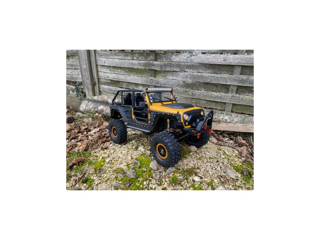 Terénní auto na dálkové ovládání DF-4S PRO CrawlerNově u nás najdete také modely nejvyšší třídy. Jedním z nich je i nádherný cawler ve stylu Jeep Wrangler Rubicon. Podvozek s ocelovým rámem je ukryt pod krásnou karoserií s mnoha detaily a interiérem s figurkou řidiče.Nepřekonatelný v terénuModel je jako stvořený pro zdolávání náročných překážek. Silný hliníkový rám, zamezující kroucení podvozku, doplňuje servo řízení s tahem 25 kg a kovovými převody. Karoserie je k podvozku připevněna neodymovými magnety a snadno se odklopí dozadu. Kovové vzpěry a tyče řízení zajišťují potřebnou stabilitu. Vertikálně uložené celohliníkové olejové tlakové tlumiče poskytují perfektní výkon v jakémkoli terénu. Díky portálovým nápravám je dosaženo maximální světlé výšky a průjezdnosti. Diferenciály modelu lze různě zamykat nebo odemykat dálkovým ovládáním (oba odemknuté, oba zamčené, pouze přední zamčený a zadní odemčený). Náhon na kola je navíc redukován převodovkou a umožňuje tak dokonalý výkon. Regulátor je odolný proti stříkající vodě. To vše podtrhují vysoce přilnavé super měkké pneumatiky o rozměru 115x46 mm s rozvorem kol 313 mm a plnohodnotné rezervy.Dvoustupňová převodovka2stupňová převodovka umožňuje pomalou jízdu terénem (cca 3 km/h) i svižnější jízdu (cca 13 km/h) a to vše pomocí dálkového vysílače. Elektromotor řady 550 může být napájen 7,4 V LiPo baterií nebo akumulátorem Ni-Mh 7,2 V (nejsou součástí dodávky), což umožňuje extrémně dlouhou dobu jízdy. Díky univerzálnímu držáku baterie lze použít téměř jakýkoli typ 2S LiPo baterie. V balení je dodávána redukce konektoru baterie z XT60 na T-Dean.Propracované dálkové ovládáníVůz je ovládán pistolovým vysílačem na frekvenci 2,4 GHz. Můžete z něj ovládat naviják s ocelovým lankem i LED osvětlení (světelná lišta, světlomety, couvací světlo, brzdové světlo, blinkry). Díky modře podsvícenému LCD displeji lze sledovat stav baterií vysílače, sílu přenosu vysílače, který rychlostní stupeň (nízký nebo vysoký) je zařazen, úhel řízení v %, poloha plynu v %, stav trimu. Volant má přídavnou páku, pomocí které je možné ovládání jednou rukou.Doporučené příslušenství: Akumulátor pro model (Ni-Mh 7,2 V nebo Li-Po 7,4 V) s konektorem XT60 nebo T-Dean. Vhodný nabíječ 4x 1,5 V. AA baterie pro vysílač. Obsah balení: Kompletně sestavený model RTR (Ready to Run) 2,4 GHz kanálové dálkové ovládání Redukce konektoru baterie z XT60 na T-Dean Drobné nářadí Přepravní box Technické parametry: Měřítko: 1/10 Konstrukce auta: crawler Délka auta: 57 Šířka auta: 25 Výška auta: 26 Auto je vhodné na ven: ano Barva: žlutá Rychlost auta: 13 Napájení ovladače k autu: 4xAA Frekvence ovládání RC auta: 2,4Ghz Konstrukce ovladače k autu: Pistolový Plynulá regulace rychlosti: ano Plynulá řízení zatáčení: ano Voděodolnost (stříkající voda): ano Vodotěsnost (potopení): nePři platbě penězi je možné dostat zajímavou nabídku neboli akční cenu a tu Vám rádi uděláme když napíšete na info@megabike-cyklo.cz