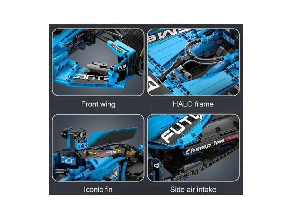 FORMULE 1/8 - stavebnice na dálkové ovládání 1667 dílkůMilujete Formule? Máme pro vás jednu nádherně zpracovanou a navíc si ji sami složíte. Stavebnice Cada je inspirovaná světoznámou stavebnicí Lego a je s ní plně kompatibilní, narozdíl od Lega se ale dají modely uvést pomocí sady motorů a dálkového ovládání do provozu.Do posledního detailu uvidíte motor, přední a zadní odpružení, funkční kolo pro zatáčení, boční přívody vzduchu, kokpit pro řidiče, zadní a přední křídla a závodní kola na zakázku. Dokonce se můžete mrknout i pod kapotuRozměry formule jsou 58x12.8cm. Abyste mohli vzít formuli na okruh, je možné přikoupit motory a dálkové ovládání.Potřebujete: Servo motor Pro, L motor Pro 2x, ovladač a batterybox. Je možné zakoupit tuto sadu + Lmotor. Obsah balení: Formule 1667 dílků Technické parametry: Měřítko: 1/8 Délka auta: 58 Šířka auta: 12.8Při platbě penězi je možné dostat zajímavou nabídku neboli akční cenu a tu Vám rádi uděláme když napíšete na info@megabike-cyklo.cz