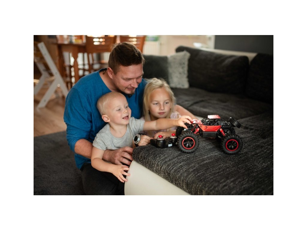 Kovový MZ-Climb s GRAVITI senzoremIdeální RC terénní auto 4x4 je MZ-climb. Patří mezi naše velmi oblíbené modely díky své výdrži a odolnosti. Tato verze má navíc ještě kovovou karoserii a ovládání graviti senzorem. Stačí si nasadit „hodinky“ a řídíte pomocí gest ruky.Silné terénní autoMZ-Climb nás zaulaj svoji silou, vyjede kopce se sklonem až 45°. Silné motory pohánějí měkká velká kola, díky kterým skvěle zvládá náročný terén. Je tak akorát velký na používání doma, ale rozhodně je to RC model vhodný do terénu.Déšť není překážkouJe odolný i proti stříkající vodě, takže sníh, rosu, mělké kaluže bez problémů projede. Pokud byste ho chtěli vystavit ještě náročnějším vlivům, doporučujeme ošetřit elektroniku sprejem nanoprotech.Dvojité ovládáníSoučástí balení je páčkový ovladač, ovládání je tedy velice snadné a je to RC model vhodný i pro děti. Model můžete ovládat i pomocí senzorických hodinek. Ty jsou na baterii CR 2032(součástí balení). Vybaven je akumulátorem NiCd 1000 mAh, se kterým vydrží v provozu cca 30 minut. Máme i silnější s kapacitou 2000 mAh, díky kterému vydržíte venku i hodinu. Do dálkového ovládání je potřeba zakoupit 2 x AA baterie. Model funguje na frekvenci 2,4 GHz, díky tomu má velký dosah a nebude se vám rušit s jinými modely.K dispozici je také v modrém provedení. Obsah balení: Kovový MZ-Climb GRAVITI senzor (hodinky) Akumulátor USB nabíječka Páčkové dálkové ovládání Baterie do ,,hodinek,, Technické parametry: Měřítko: 1/14 Konstrukce auta: crawler Délka auta: 31 Šířka auta: 20 Výška auta: 17 Hmotnost auta: 750 Auto je vhodné na ven: ano Barva: červená Auto je vhodné do interiéru: ano Typ motorů v autě: stejnosměrné Rychlost auta: 8 Kapacita akumulátoru v autě: 1000 Napětí akumulátoru v autě: 6 Typ akumulátoru do auta: Nicd Typ nabíječky: USB Výměnný akumulátor v autě: ano Napájení ovladače k autu: 2xAA Doba jízdy auta: 30 Dosah ovládání auta: 50 Frekvence ovládání RC auta: 2,4Ghz Konstrukce ovladače k autu: Páčkový Plynulá regulace rychlosti: ne Plynulá řízení zatáčení: ne Voděodolnost (stříkající voda): ano Vodotěsnost (potopení): nePři platbě penězi je možné dostat zajímavou nabídku neboli akční cenu a tu Vám rádi uděláme když napíšete na info@megabike-cyklo.cz