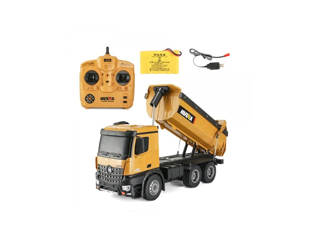 Propracovaný sklápěč Mercedes-Benz Arocs 1:14 2,4Ghz 10 kanálůRC model sklápěče je možné přepínat na 10 kanálů. Vysílač pracuje na frekvenci 2,4 Ghz a dosahuje do vzdálenosti až 100 metrů. S modelem si užijete jízdu plných 30 minut vkuse.Propracovaný vůz jezdí do všech směrů. Tato povedená replika skutečného vozu je vyrobena z kvalitního plastu a kovových součástí. Vůz je vybaven LED osvětlením a zvukovými efekty, tyto funkce dodávají na skutečnosti vozu. Sklápěč 1:14 je dodáván již s nainstalovanou elektronikou. Pneumatiky jsou vyrobeny z pravé gumy a poskytují enormní přilnavost na širokou škálu povrchů. Nabíjení výkonného akumulátoru trvá cca 4 hodiny.Poháněné jsou obě zadní nápravy.Do vysílače je potřeba dokoupit 4x AA baterie, které nejsem součástí balení a jízda může začít. Obsah balení: Model Vysílač Akumulátor Nabíječka Technické parametry: Měřítko: 1/14 Konstrukce auta: stroj Délka auta: 45 Šířka auta: 14 Výška auta: 19 Auto je vhodné na ven: ano Barva: oranžová Auto je vhodné do interiéru: ano Typ motorů v autě: stejnosměrné Kapacita akumulátoru v autě: 500 Napětí akumulátoru v autě: 7.4 Doba jízdy auta: 30 Dosah ovládání auta: 100 Frekvence ovládání RC auta: 2,4Ghz Plynulá regulace rychlosti: ne Plynulá řízení zatáčení: ne Voděodolnost (stříkající voda): ne Vodotěsnost (potopení): nePři platbě penězi je možné dostat zajímavou nabídku neboli akční cenu a tu Vám rádi uděláme když napíšete na info@megabike-cyklo.cz