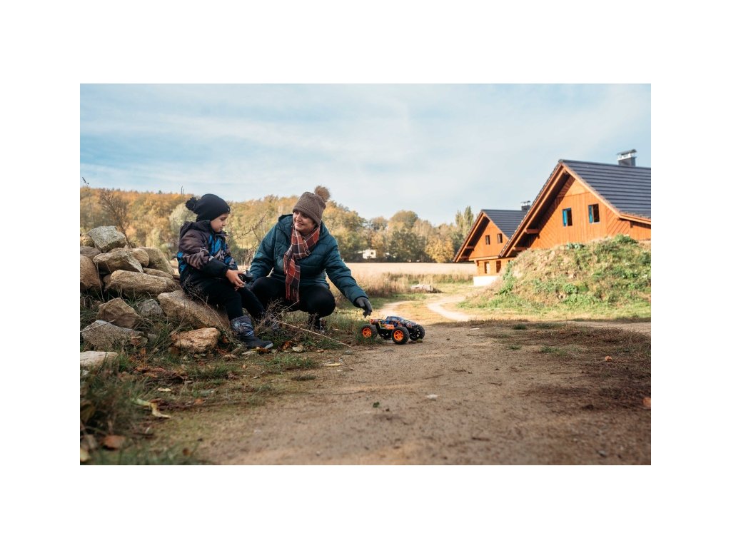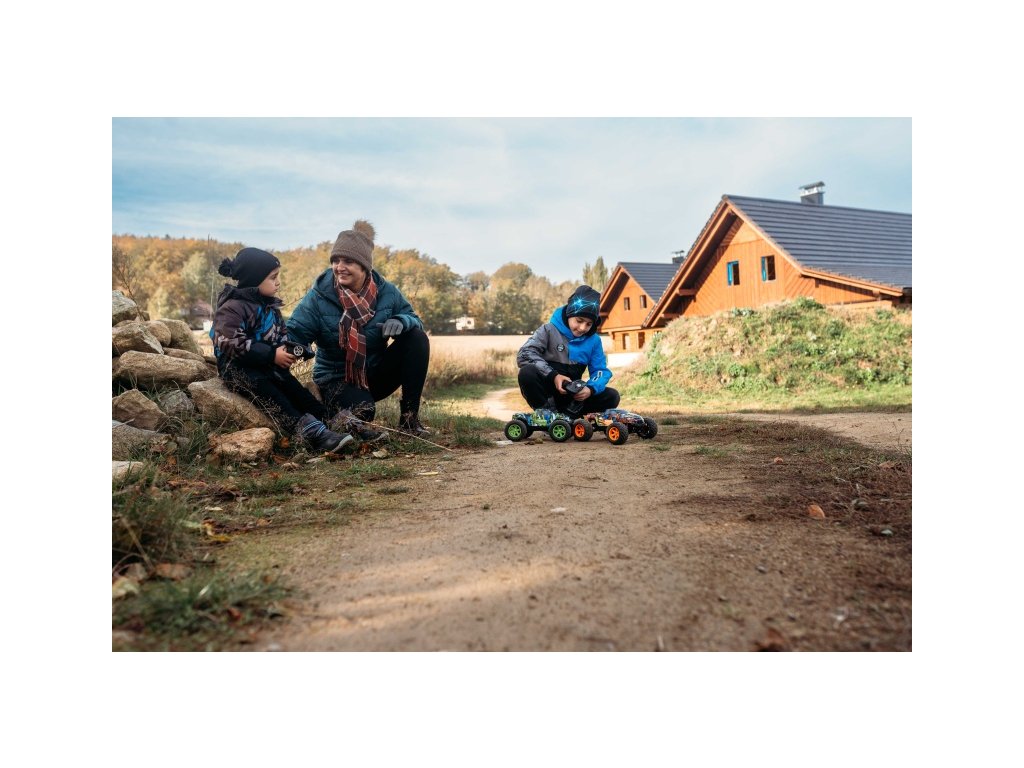 Dominator je dalším RC modelem od značky RMT. Snažíme se vybrat ty nejlepší funkce a parametry a sestavit pro vás ten nejideálnější RC model pro každou kategorii, a díky tomu vznikla značka RMT. Povedlo se sestavit legendární auto na dálkové ovládání pro děti a tím je LAND ROVER. Nyní nastal čas na něco rychlejšího. Rychlé auto na dálkové ovládání do každého terénuStěžejními parametry byla rychlost, obratnost a odolnost. Dominator je sestrojen tak, aby dokázal jet rychlostí až 36 km/h, díky pohonu zadní nápravy je neskutečně obratný a s velkými ultra měkkými koly a kvalitním zpracováním odolá i velkým výzvám. Čtyři nezávisle uložené bezolejové tlumiče s kovovými prvky si poradí v jakémkoliv terénu, nezastaví ho štěrk, hlína, kořeny ani mokrá tráva. Ochrana proti vodě z něj dělá voděodolného závodníka. Masivní kola v kombinaci s vyšším podvozkem zaručují skvělou průjezdnost terénem a trakci. RC Monster truck s plně proporcionálním ovládánímVýkonný stejnosměrný motor zajišťuje maximální rychlost 36 km/h, velikou výhodou tohoto modelu je omezovač rychlosti. Stačí jen kolečkem na dálkovém ovládání stáhnout maximální rychlost a přizpůsobit tak auto i pro mladší závodníky. Kvalitní komponenty, jako jsou kovové unašeče kol a poloosy, vyladěné kloubové uložení těhlic v ramenou a kvalitní diferenciály zaručují vysokou odolnost RC auta. Samozřejmostí je plně proporcionální ovládání, kdy můžete plynule zrychlovat, zpomalovat, ale i zatáčet. Design podtrhují přední LED světla. RC auto s dlouhou dobou jízdySoučástí modelu je nabíjecí akumulátor Li-ion 1500 a 2500 mAh 7,4 V, se kterými dokáže auto jezdit až 122 minut. Přiložená USB nabíječka při nabíjení bliká a při ukončení nabíjení svítí, tak poznáte, že je připravena k další jízdě. Dálkové ovládání je pistolové, velmi intuitivní s dosahem cca 100 m. Potřebujete do něj 3 x AA baterie. Obsah balení: RC auto Dominator USB nabíječka Akumulátor 1500 mAh Akumulátor 2500 mAh Dálkové ovládání Technické parametry: Měřítko: 1/12 Konstrukce auta: monster Délka auta: 32 Šířka auta: 27 Výška auta: 15 Hmotnost auta: 1150 Auto je vhodné na ven: ano Rychlost auta: 36 Kapacita akumulátoru v autě: 2500 Napětí akumulátoru v autě: 7.4 Typ akumulátoru do auta: Li-ion Typ nabíječky: USB Výměnný akumulátor v autě: ano Napájení ovladače k autu: 3xAA Doba jízdy auta: 76 Dosah ovládání auta: 100 Frekvence ovládání RC auta: 2,4Ghz Konstrukce ovladače k autu: Pistolový Plynulá regulace rychlosti: ano Plynulá řízení zatáčení: ano Voděodolnost (stříkající voda): ano Vodotěsnost (potopení): nePři platbě penězi je možné dostat zajímavou nabídku neboli akční cenu a tu Vám rádi uděláme když napíšete na info@megabike-cyklo.cz