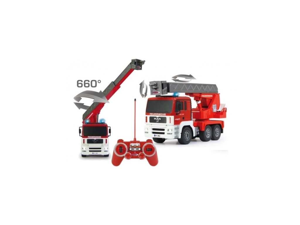 Hasičské auto na dálkové ovládáníDo detailu propracovaný licencovaný RC model Hasičského auta ve svém originále od MAN Truck & Bus Group vyrobený v měřítku 1:20 s výsuvným žebříkem. Model je poháněn dobíjecím článkem o kapacitě 400 mAh, který vydrží zhruba na 30 minut jízdy. Zvukové a světelné efektyProvoz auta doprovází zvukové i světelné efekty. Maják bliká jako u reálného auta. Ovládání je jednoduché, na frekvenci 2,4 GHz, neruší se tedy s dalšími modely. Dálkové ovládání je na dvě tužkové baterie AA. Obsah balení: RC Model hasiče Nabíječka baterie Baterie Ovladač 2,4 GHz Technické parametry: Měřítko: 1/20 Konstrukce auta: stroj Délka auta: 42 Šířka auta: 57 Výška auta: 20 Hmotnost auta: 27 Auto je vhodné na ven: ano Barva: červená Auto je vhodné do interiéru: ano Typ motorů v autě: stejnosměrné Rychlost auta: 10 Kapacita akumulátoru v autě: 400 Typ nabíječky: 230V Výměnný akumulátor v autě: ano Napájení ovladače k autu: 2xAA Doba jízdy auta: 30 Dosah ovládání auta: 25 Frekvence ovládání RC auta: 27Mhz Konstrukce ovladače k autu: Páčkový Plynulá regulace rychlosti: ne Plynulá řízení zatáčení: ne Voděodolnost (stříkající voda): ne Vodotěsnost (potopení): nePři platbě penězi je možné dostat zajímavou nabídku neboli akční cenu a tu Vám rádi uděláme když napíšete na info@megabike-cyklo.cz