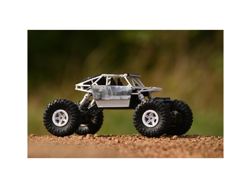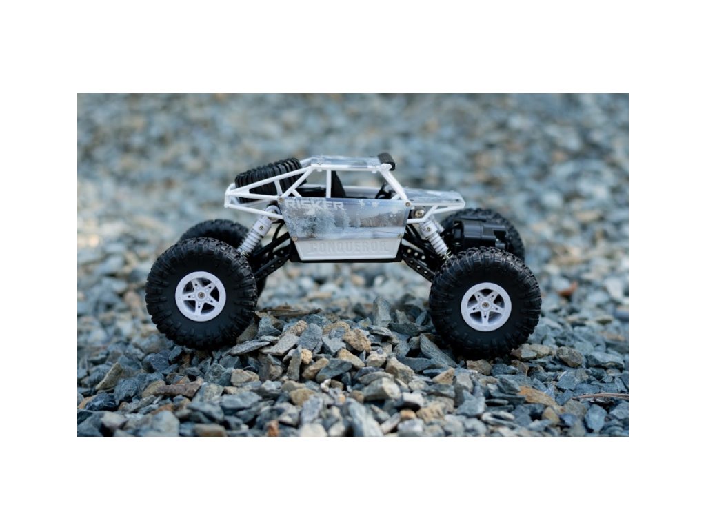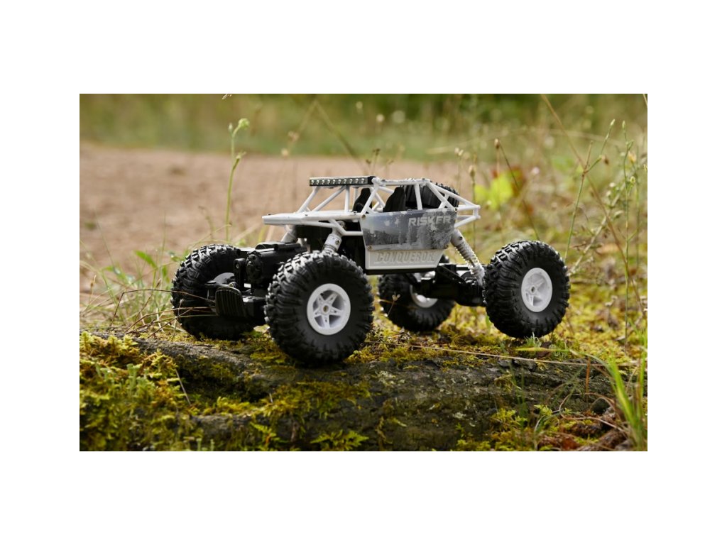 Auto na dálkové ovládání Risker conqueror 4x4 1:18Risker conqueror je trailové auto, se kterým můžete vyrazit do jakéhokoli terénu. Díky snadnému ovládání je skvělou volbou pro děti.Těžký terén není překážkouRisker conqueror si zásluhou velkých 75 mm gumových kol a pohonem 4x4 dokáže poradit i s velmi náročným terénem. Kořeny, bahno, kameny, písek ani zmrzlý sníh nejsou ničím, co by nedokázal zvládnout. Je vysoce odolný vůči nárazům a jen tak něco ho nerozhází.Dlouhá výdržOriginální akumulátor NiMh 4,8 V 700 mAh umožnuje výdrž až 20 minut, s náhradním akumulátorem ale nabízí dobu jízdy až 80 minut, bude tedy skvělým společníkem na delší procházky s dětmi. Navíc se jedná o menší model, který snadno schováte do batohu.Jednoduché ovládáníRisker conqueror má snadné pistolové ovládání na frekvenci 2,4 GHz, což vám umožní užít si jízdu společně s jinými RC modely, aniž byste si navzájem rušili signál. S rychlostí až 5km/h si navíc jistě užijete spoustu zábavy jak vy, tak i vaše děti. Obsah balení: RC auto na dálkové ovládání CONQUEROR Vysílačka 2,4GHz USB nabíječka Dobíjecí akumulátor Technické parametry: Měřítko: 1/18 Konstrukce auta: monster Délka auta: 27 Šířka auta: 16 Výška auta: 13 Auto je vhodné na ven: ano Barva: bílá Auto je vhodné do interiéru: ano Typ motorů v autě: stejnosměrné Rychlost auta: 5 Kapacita akumulátoru v autě: 700 Napětí akumulátoru v autě: 4.8 Typ akumulátoru do auta: Nimh Typ nabíječky: USB Výměnný akumulátor v autě: ano Napájení ovladače k autu: 3xAA Doba jízdy auta: 20 Dosah ovládání auta: 100 Frekvence ovládání RC auta: 2,4Ghz Konstrukce ovladače k autu: Pistolový Plynulá regulace rychlosti: ne Plynulá řízení zatáčení: ne Voděodolnost (stříkající voda): ne Vodotěsnost (potopení): nePři platbě penězi je možné dostat zajímavou nabídku neboli akční cenu a tu Vám rádi uděláme když napíšete na info@megabike-cyklo.cz