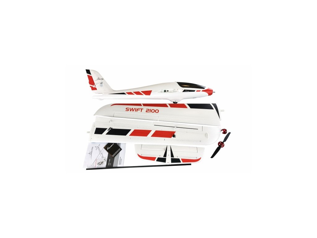 RC motorový kluzák na dálkové ovládání AMXPlanes Swift 2100Společnost AMXPlanes představuje svůj první kluzák model, Swift 2100. Vyznačuje se jednoduchou montáží, snadným ručním startem a skvělými letovými vlastnostmi. Při návrhu letounu byl použit proces CFD, aby bylo dosaženo optimálního poměru vztlaku a odporu vzduchu. Díky svým aerodynamickým vlastnostem hladce a efektivně klouže vzduchem. Navíc umožňuje přesné ovládání a manévrování. Kluzák Swift 2100 je vyroben z robustní pěny EPO vyztužené uhlíkovými vlákny a plastem. Díky tomu je odolný vůči lehkým srážkám a nárazům. Materiál zvládne i menší letecký neúspěch, snadno ho opravíte pomocí vteřinového lepidla pro RC modely. Délka letounu je 1050 mm, rozpětí křídel 2100 mm, výška 290 mm a vzduchová hmotnost 1500 g.Výkonný motor a doba letu až 30 minutVýztuhy z uhlíkových vláken dodávají kluzáku dodatečnou strukturální pevnost. Díky tomu zůstává model stabilní a citlivý i při dynamických letových manévrech. Továrně instalovaný pohonný systém s účinným střídavým motorem 3136/1000KV a střídavým ESC Hobbywing 40A ve spojení s 3S nebo 4S Li-Po akumulátorem a velmi účinnou dvoulistou skládací vrtulí 10x6, poskytuje dostatek tahu pro rychlé stoupání. Tah je přibližně 1:1. V závislosti na řízení plynu a kapacitě zvoleného akumulátoru je možné dosáhnout dlouhých letových časů až 30 minut. Všechny řídicí plochy jsou vybaveny 9g digitálními servy, jedná se o 6 ks serv. U letounu lze ovládat plyn, křidélka, klapky, výškovku a směrovku. Kolečko umístěné v přední části trupu, plastové díly na koncích křídel a ocasní části umožňují také přistání na tvrdších plochách.Akrobatické manévrySwift 2100 nabízí milovníkům létání na kluzácích bezkonkurenční zážitek. Ať už se jedná o pohodová kolečka v termice nebo vzrušující akrobatické manévry. Díky kombinaci výkonu a přesnosti si zde každý najde své plné potěšení. Ovládaný plyn, křidélka, klapky, výškovka a směrovka potěší každého zkušeného pilota.Zprovoznění motorového kluzákuPožadované příslušenství pro zprovoznění je vysílač / přijímač s minimálně 5kanály, doporučujeme 6kanálový. Dále baterii Li-Po 3S/4S 2200-3300 mAh, ideálně 4S 14,8 V 2600 mAh XT60. Akumulátorový prostor je cca 210 x 35 x 35 mm. V neposlední řadě nabíječku baterií a nástroj na montáž šroubů na modelu. Montáž je opravdu velice snadná, nepotřebujete žádné lepidlo, veškeré díly se k sobě šroubují. Doba stavby zabere cca 15 minut. Obsah balení: Model Swift 2100 Příslušenství pro montáž Technické parametry: Rozpětí: 210 Délka letadla: 105 Hmotnost: 1350 Barva: bílá Typ akumulátoru: Li-Po Doba letu: 30 Kamera: nePři platbě penězi je možné dostat zajímavou nabídku neboli akční cenu a tu Vám rádi uděláme když napíšete na info@megabike-cyklo.cz