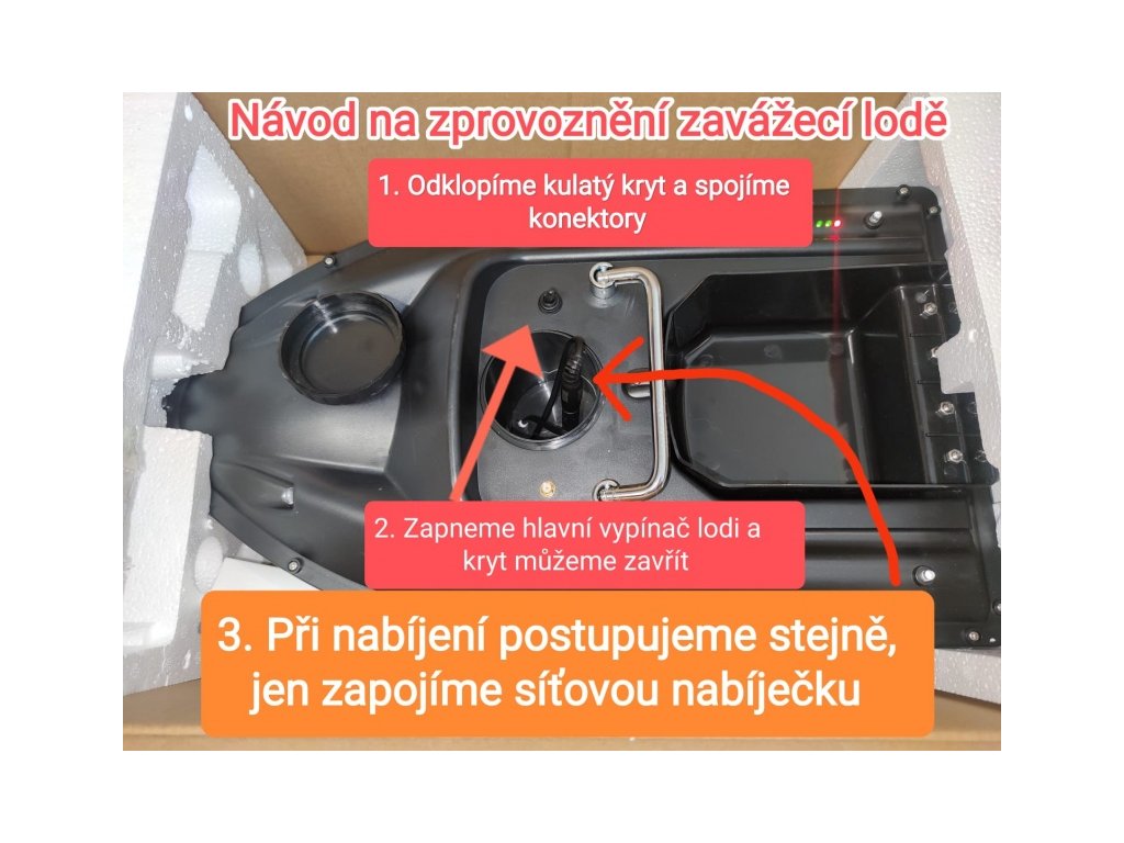 Zavážecí loďkaZavážecí loď je ideální pomůcka pro každého rybáře. Díky ní může dovést návnadu až 500 m od břehu a povýšit tak zážitek z rybaření ještě o krůček výš. Zavážecí loď D13 je vyrobena z kvalitního materiálu ABS, je stabilní a pevná. Odolá i silnému větru a vlnám, díky těsnění je plně vodotěsná. Vyniká v odolnosti, nízké hlučnosti a spotřebě energie.Zásobník na 1,5 kg krmivaModel uveze až 1,5 kg návnady. Má jednu konstantní rychlost a automaticky vypne motor při vykládce návnady, aby nerušil ryby. Dálkové ovládání je na frekvenci 2,4 GHz, do kterého jsou potřeba 4 x AA baterie. Dosah je cca 500 m. Tato zavážecí loď je poháněna integrovaným akumulátorem Li-Po 7,4 V 5200 mAh, díky kterému loďka vydrží až 2 hodiny plavby. Akumulátor nabijete přiloženou nabíječkou cca za 12 hodin. Rozměry loďky jsou 51 x 27 x 17 cm a hmotnost je 1 961 g. Obsah balení: Zavážecí RC loď Dálkové ovládání Nabíječka Akumulátor Technické parametry: Délka: 51 Šířka: 27 Výška : 17 Rychlost: 5 Výdrž: 120 Kapacita akumulátoru: 5200 Napětí akumulátoru: 7.4 Typ akumulátoru: Li-Po Typ nabíječky: 230V Výměnný akumulátor: ano Napájení ovladače: 4xAA Barva: černá Proporcionální plyn: ne Proporcionální zatáčení: ne Dosah: 500 Vodotěsnost: anoPři platbě penězi je možné dostat zajímavou nabídku neboli akční cenu a tu Vám rádi uděláme když napíšete na info@megabike-cyklo.cz