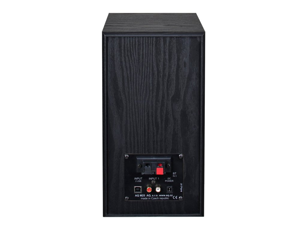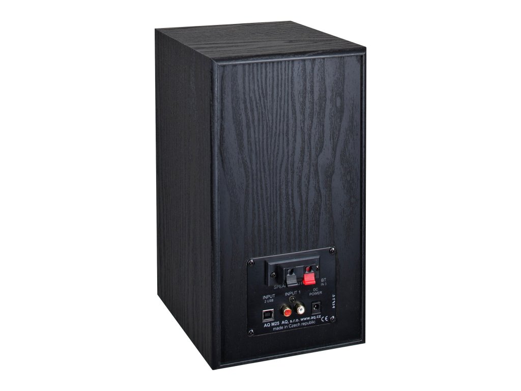 AQ M25 multimedia jsou aktivní dvoupásmové reprosoustavy s Bluetooth přijímačem, analogovým vstupem (RCA) a vstupem USB-B pro připojení PC. Vychází z osvědčeného modelu AQ M24, nově s několika inovacemi. Nejviditelnější technickou změnou je rozšíření konektivity, nový výškový reproduktor a inovovaný modul zesilovače třídy D 2 x 30 W, přizpůsobený osazeným měničům. Použity jsou výběrové součástky s dlouhou životností a sofistikovaná výhybka s masivními pájecími body. Reprosoustavy AQ M25 jsou určeny pro menší obytné prostory nebo pracovny a přináší skutečně přesný a kvalitní stereofonní zvuk, který neunavuje ani při dlouhodobém poslechu.V jedné z reprosoustav je vestavěn kompaktní zesilovač o výkonu 2 x 30 W. Samostatné reprosoustavy tak stačí po vybalení pouze propojit a systém je ihned připraven k přehrávání. K AQ M25 lze jednoduše připojit také gramofon s vestavěným phono předzesilovačem. Nemá-li gramofon vestavěný předzesilovač, můžete ho připojit prostřednictvím externího phono předzesilovače (např. AQ MM3).