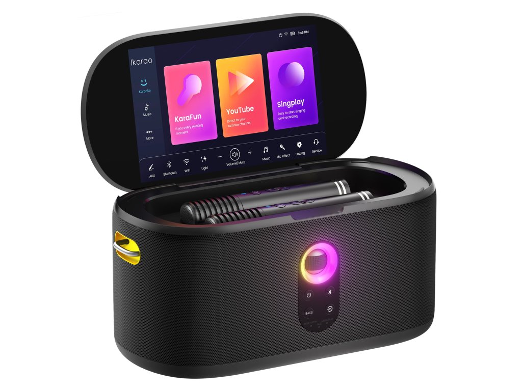Přenosné domácí karaoke all-in oneVylepšete své karaoke zážitky s přenosným bezdrátovým chytrým karaoke zařízením IKarao Shell S1. Toto špičkové zařízení s výkonem 300 W představuje dokonalé řešení pro večírky nebo rodinné oslavy.