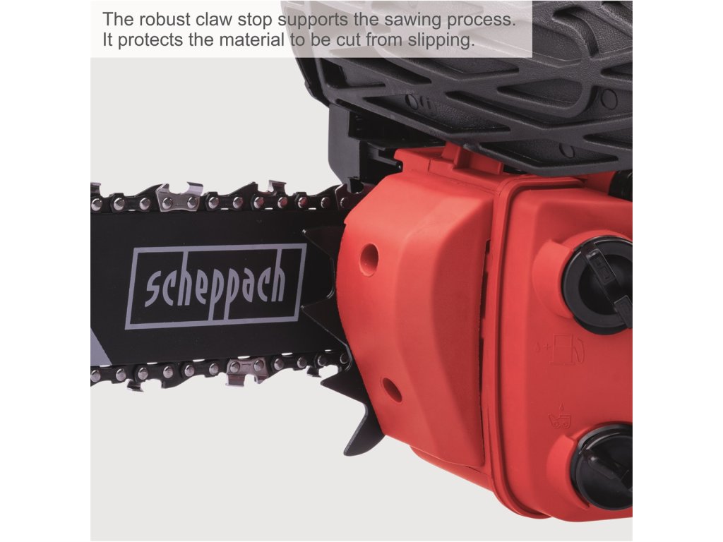 PCS 26 - řetězová vyvětvovací pila s benzínovým motorem Benzínová pila Scheppach PCS 26 je malá, kompaktní pila, vhodná na prořezávání stromů, přípravu palivového dřeva o menším průměru, arboristické a tesařské práce a další běžné práce okolo domu. Je osazena kvalitní lištou a řetězem ProCut. Řez tak bude vždy rychlý, bezpečný a hladký. Další výbava zahrnuje automatické mazání řetězu, brzdu motoru, nastřikovací pumpičku pro snadné starty, heavy-duty vzduchový filtr pro dlouhou životnost motoru, očko na přichycení karabiny a antivibrační systém. Pila je lehká, skvěle vyvážená a držadlo umožňuje snadné držení pily v různých polohách. Konstrukce Pila je vybavena malým lehkým motorem o výkonu 0,7 kW a zdvihovém objemu 25 cm3. I tak si ale dokáže poradit s větvemi o průměru až 20 cm. Součásti balení: pila PCS 26 pilová lišta pilový řetěz ochranný kryt lišty Servisní zázemí Scheppach svým zákazníkům zároveň poskytuje širokou servisní síť, jejíž nedílnou součástí je i naše společnost. Využijte prodloužené záruky Bližší informace o záručních podmínkách naleznete zde. Případné bezpečnostní pokyny, výstrahy a upozornění jsou součástí návodu k obsluze, který je k dispozici v sekci KE STAŽENÍ. Kontaktní údaje výrobce / dovozce / zplnomocněného zástupce výrobce v EU: Scheppach GmbH Günzburger Str. 69, 89335 Ichenhausen, Germany email: service@scheppach.comPři platbě penězi je možné dostat zajímavou nabídku neboli akční cenu a tu Vám rádi uděláme když napíšete na info@megabike-cyklo.cz