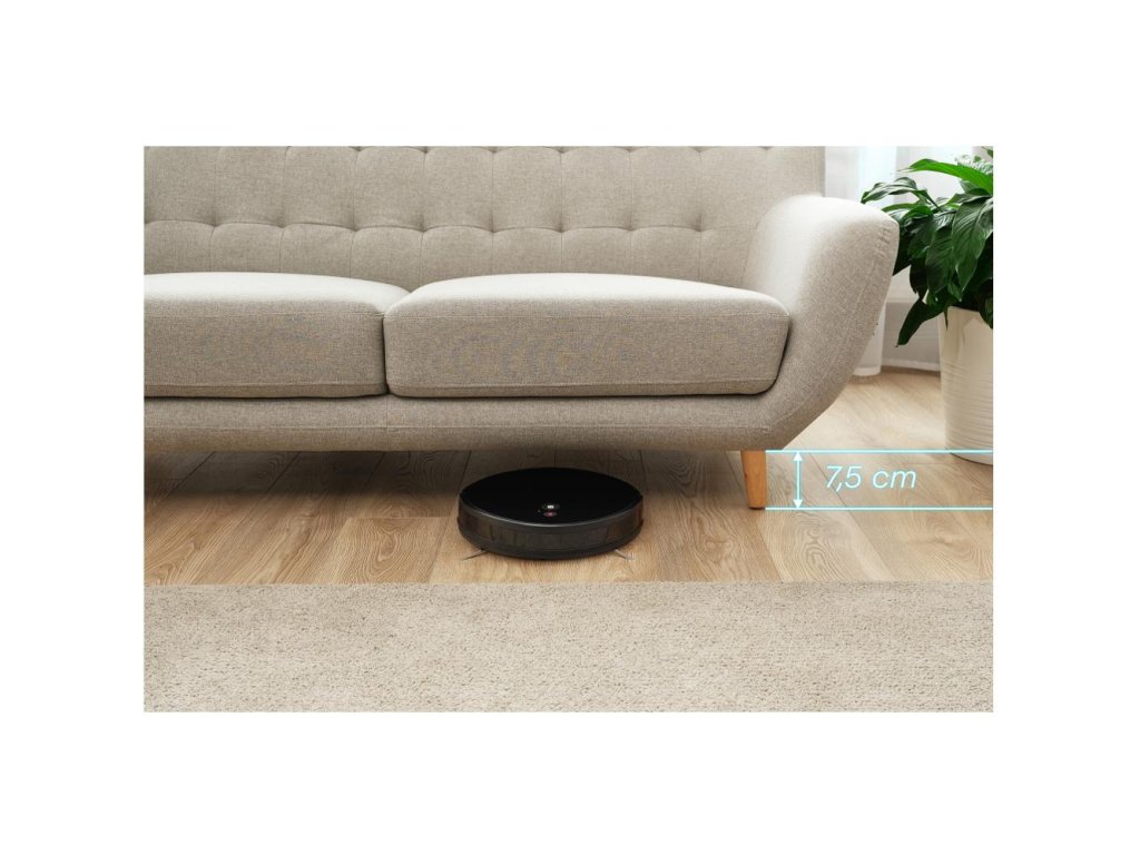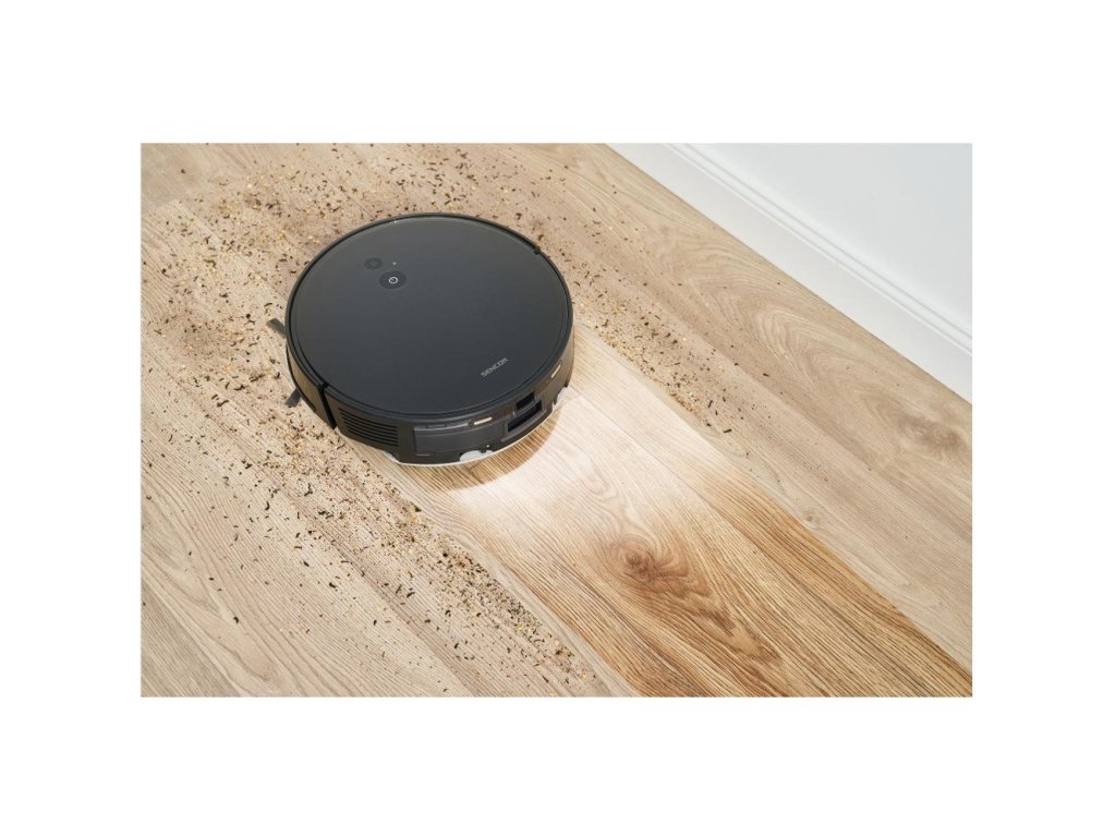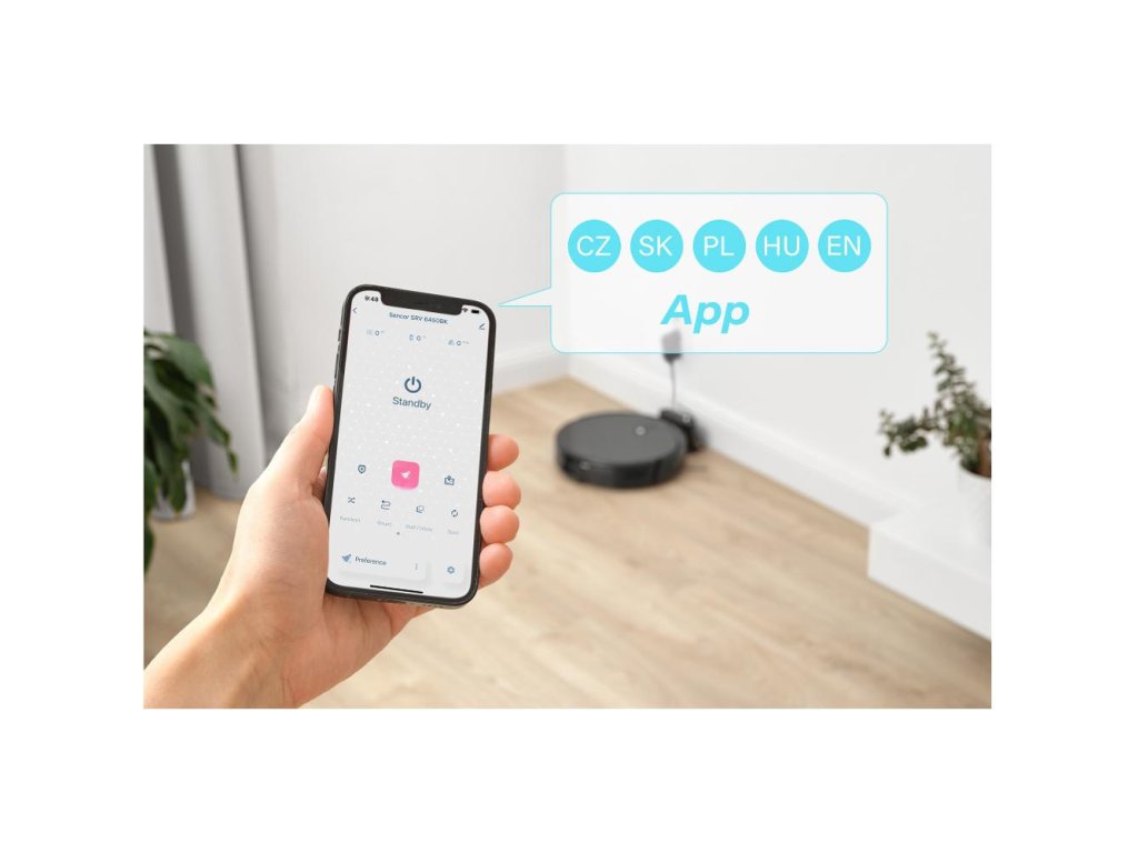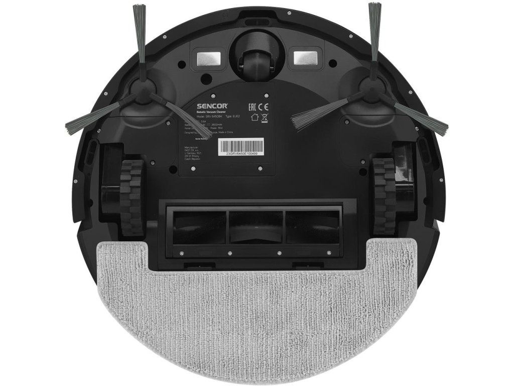 Vysavač Sencor SRV 6450BK si s přehledem poradí se všemi typy podlah, přičemž zajistí dokonalou čistotu a lesk. Disponuje funkcí vysávání i mopování. Sací výkon 3 000 Pa a délka provozu až po dobu 140 minut zajišťují perfektní výsledky. Ovládání probíhá přes dálkový ovladač nebo mobilní aplikaci Sencor Home, která nabízí neustálou kontrolu a možnost nastavování i mimo domácnost. Velký rotační kartáč obstará hrubou špínu, přičemž vyčištění každého rohu mají na starost dva boční kartáče. Výška pouhých 7,5 cm a průměr 32 cm zajišťují snadný pohyb mezi překážkami, pod nábytkem i v menších prostorách. Efektivní pohyb má na starost gyroskopická navigace.Sací síla 3 000 Pa