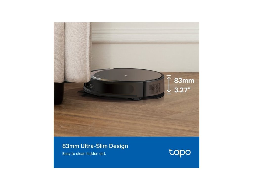 Dílky štíhlému tělu s výškou 83 mm dokáže vysavač zajet i pod nábytek. Chytrá technologie Tapo IQ+ Smart Cleaning funguje jako mozek vysavače. Pokročilé senzory a algoritmy zabrání vysavači narážet do věcí, uvíznout pod nábytkem nebo sjet ze schodů. Snadno překoná dveřní prahy a tlusté koberce s výškou do 22 mm, takže ho nebudete muset neustále hlídat.