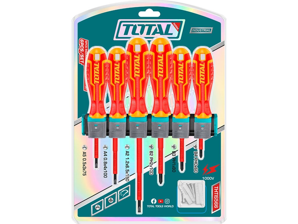 Sada elektrikářských šroubováků 1000V kvalitní chrom vanadová ocel Sada obsahuje: SL3×75, SL4×100, SL6.5×150, PH0×60, PH1×80, PH2×100 certifikace VDE- možnost upevnění na zeď