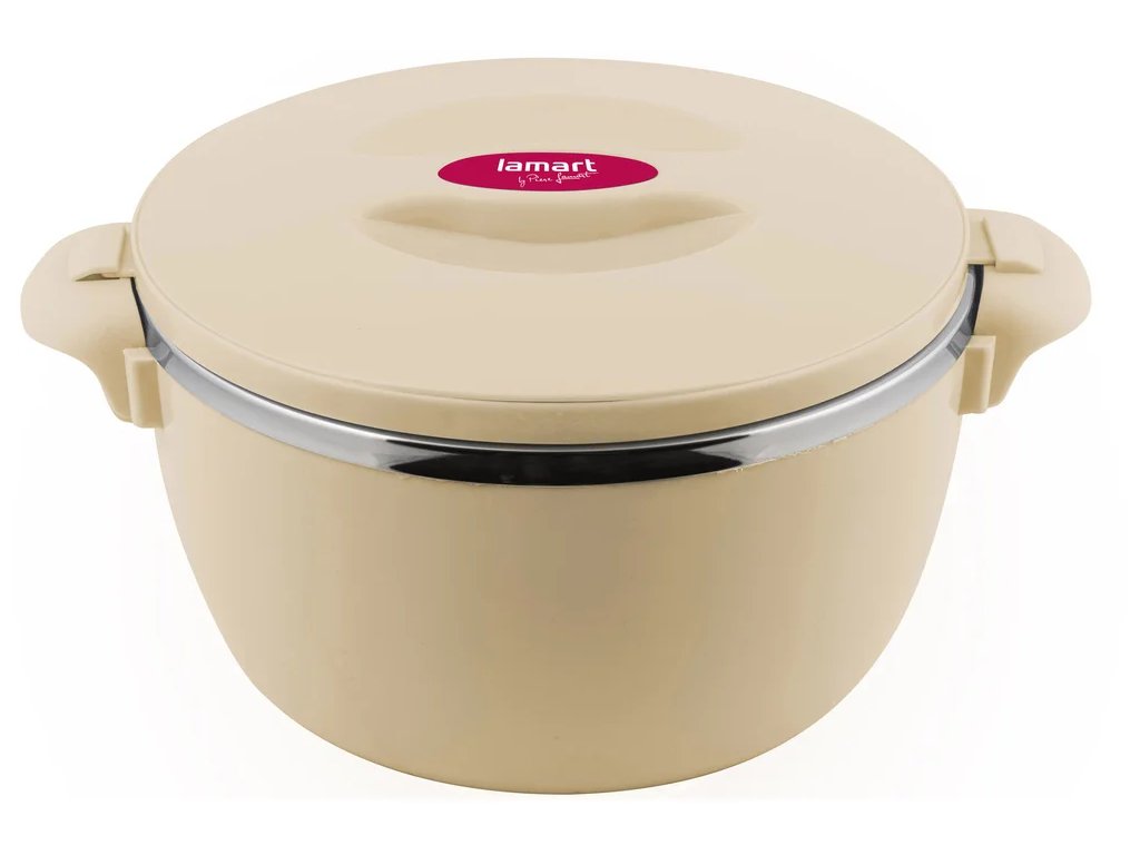 Termohrnec je praktický pomocník pro uchovávání a přenášení horkých i studených pokrmů. Vyroben z kvalitního odolného plastu a vnitřní nerezové vložky, izolační výplň mezi stěnami je z PUR pěny pro zachování požadovaných teplot potravin.Víko termonádoby se uzamyká v části madel a je vzduchotěsné. Nádoba s víkem je vhodná také pro ukládání potravin do ledničky. Víko obsahuje integrované madlo.