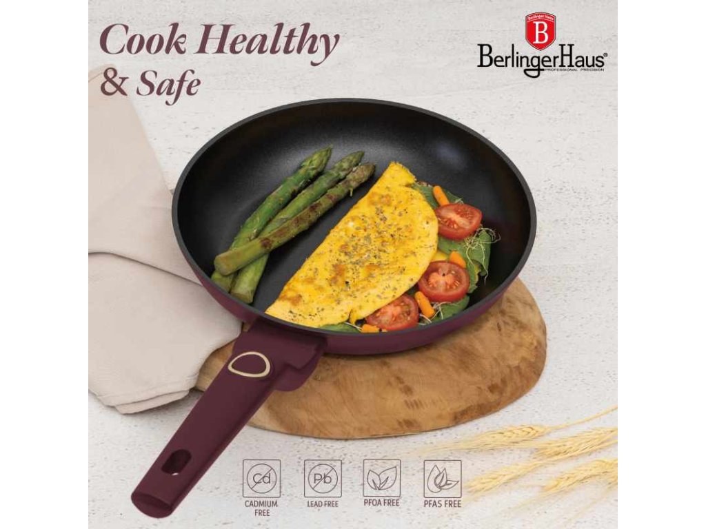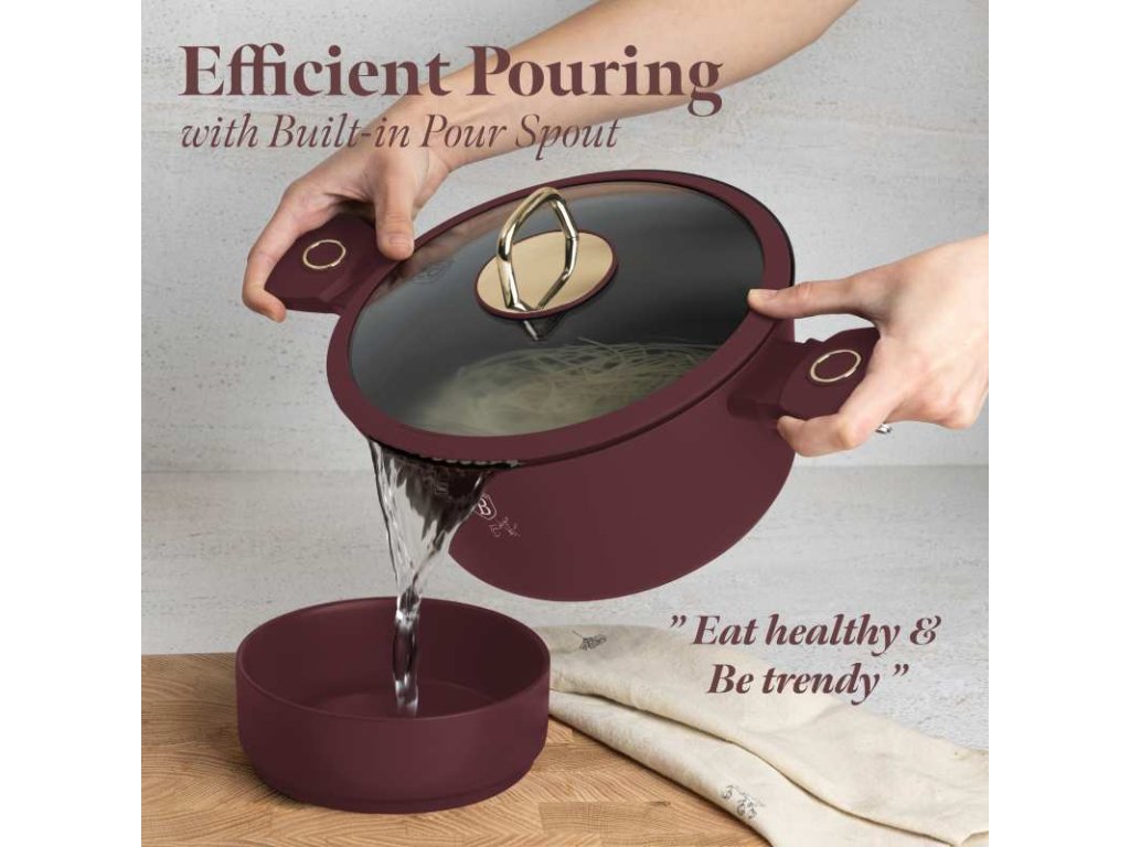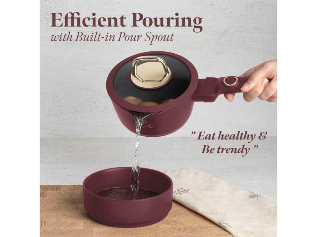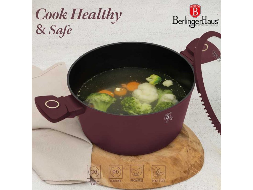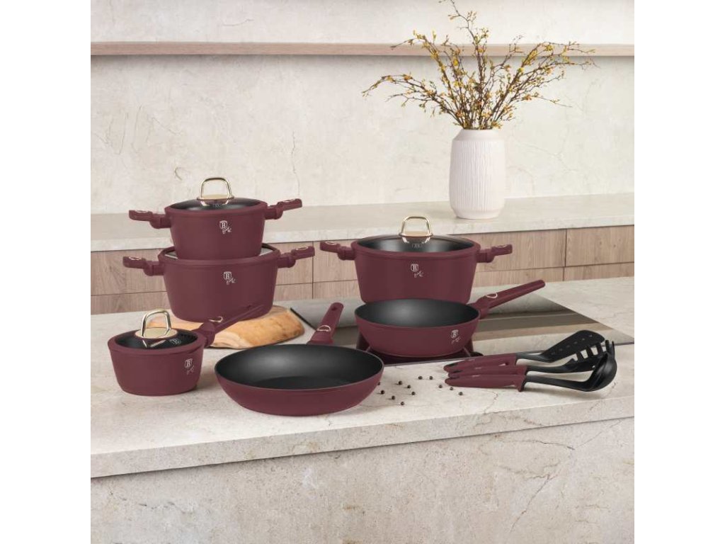 Sada obsahuje pánve, kastroly s praktickými cedicími poklicemi, rendlík, kuchyňské náčiní i 2 bakelitové podložky. Díky tomu máte vše potřebné pro běžné vaření i náročnější přípravu pokrmů. Povrch je bezpečný a neobsahuje PFOA, olovo ani kadmium.