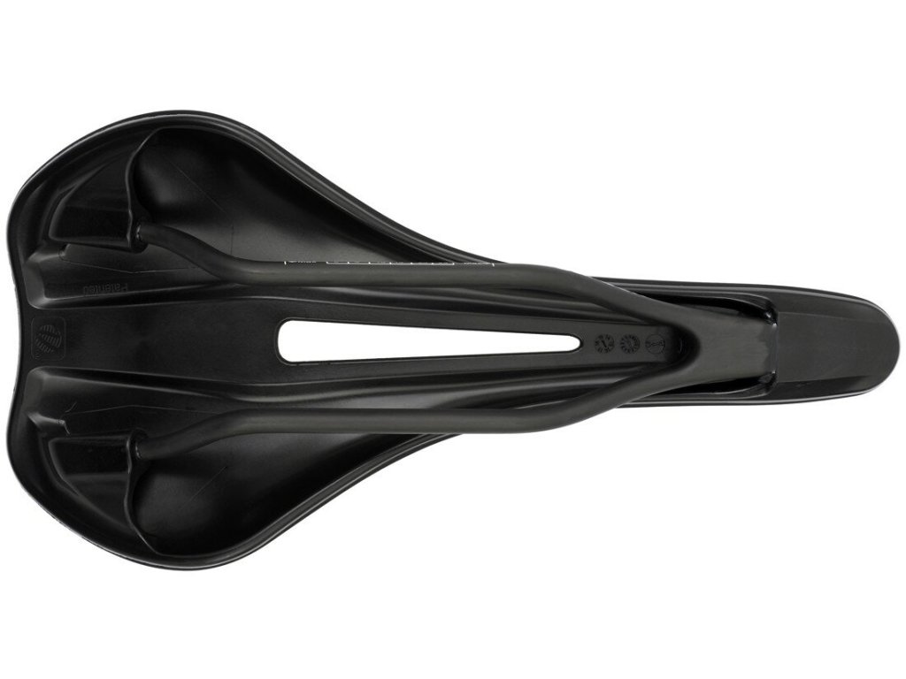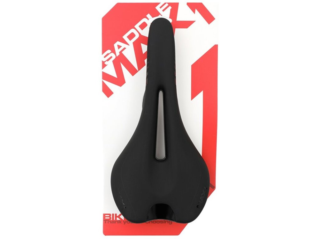 Závodní sedlo MAX1 Evo s karbonovými ližinami, karbonovou platformou a ergonomickým otvorem ve střední části.Ergonomický středový prolis s otvorem zvyšuje komfort a redukuje tlak v pánevní oblasti. Výplň sedla velmi dobře tlumí otřesy a zajišťuje pohodlí. Jednoduchá údržba a voděodolný povrch.
