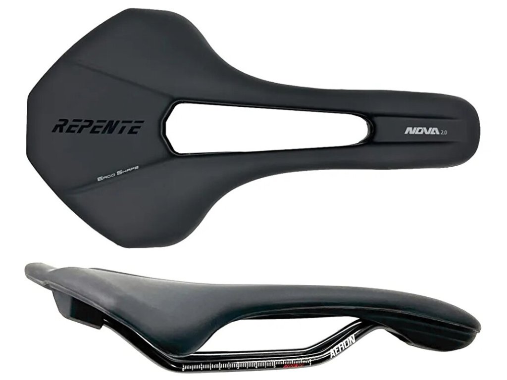 Polstrování i skořepina sedla REPENTE Nova 2.0 Aeron jsou vyrobené z jednoho plně recyklovatelného materiálu, spojené bez lepidel díky unikátní Repente technologii. Už nemusíte dělat kompromisy mezi pohodlím, výkonem a ekologií. Verze Aeron vybavená chrom-molybdenovými ližinami, patří navíc k nejlehčím ve své kategorii.Hlavním cílem je také u sedlo Nova 2.0 pohodlí a ergonomie. Sedlo se vyznačuje širokým centrálním anatomickým kanálkem, tvarem "Close Fit" v oblasti sedací kosti pro úlevu od tlaku a prevenci necitlivosti a bočním tvarem "Ergo Shape" pro zamezení nepohodlí na vnitřní straně stehen. Protiskluzový potah s příjemně povrchem zajišťuje optimální přilnavost sedla na silnici i v terénu.