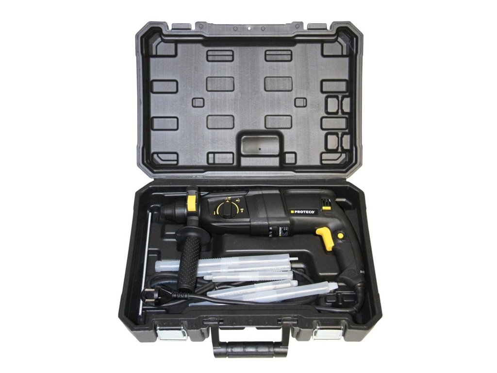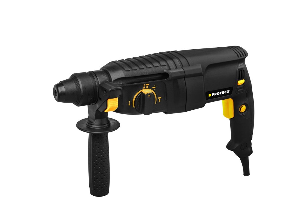 Kladivo vrtací Proteco je spolehlivý pomocník každého kutila určený k vrtání a sekání do betonu, kamene či cihel. Stačí jen použít příslušný vrták nebo sekáč, jejichž výměna je velmi jednoduchá a rychlá díky použitému mechanismu SDS+. K pohodlnému uchycení nástroje do ruky poslouží hlavní a přídavná rukojeť. Výhody a charakteristické znaky - Upínání SDS+ (SDS Plus) - Počet úderů 0-4000/min - Režimy pro maximální univerzálnost - Příkon 800 W - Přídavná rukojeť Maximální průměry nástrojů : - dřevo 30 mm - beton 26 mm - ocel 13 mm - vrtací korunky do zdi 68 mmPři platbě penězi je možné dostat zajímavou nabídku neboli akční cenu a tu Vám rádi uděláme když napíšete na info@megabike-cyklo.cz