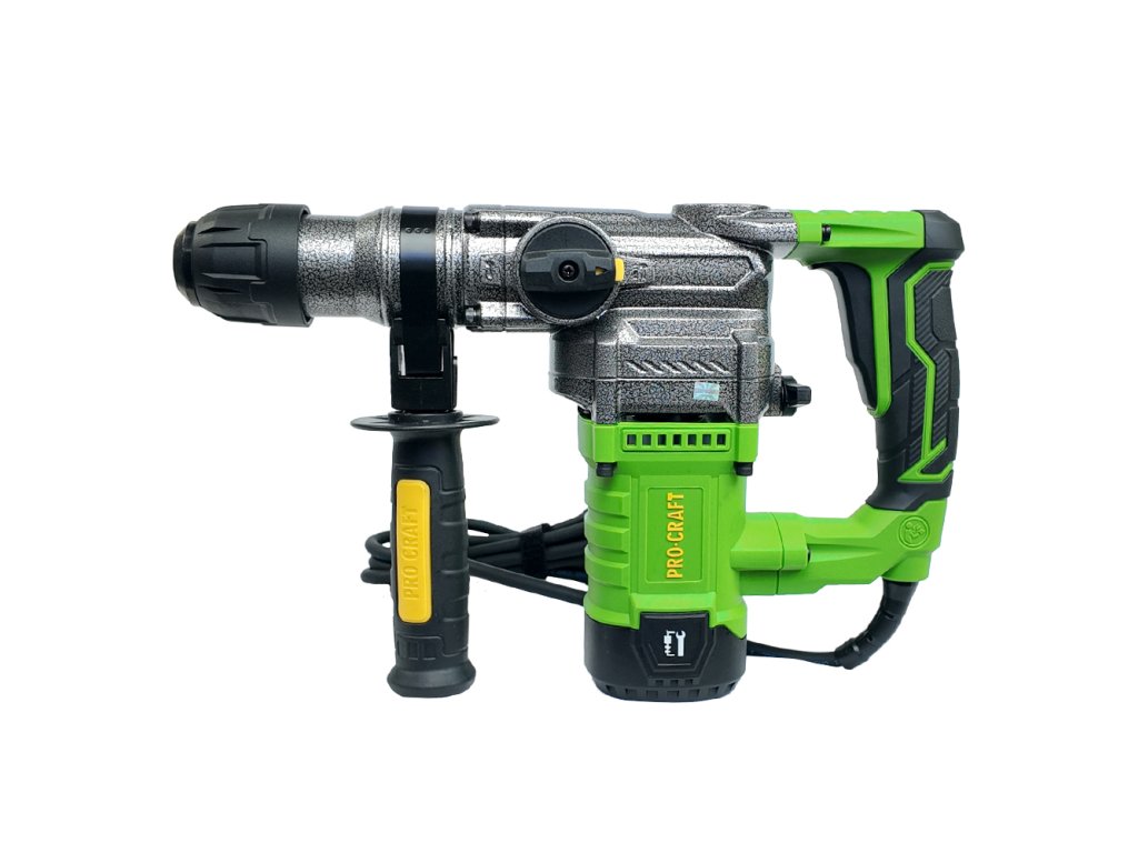 Kombinované kladivo Procraft BH1300 je určeno k práci se stavebními materiály jako jsou cihly, beton nebo kámen. Tři přepínatelné funkce zajišťují všestranné využití kladiva: vrtání, vrtání s příklepem, sekací funkce. Protože kladivo má rukojeť tvaru „D“,chrání vaši ruku před zraněním a zajišťuje pohodlné držení. Jako příslušenství lze použít SDS Plus příklepové vrtáky do betonu, ploché - špičaté nebo tvarované sekáče na stavební materiály, hadovité (spitálové) vrtáky a dláta do dřeva. Součástí dodávky je plochý a špičatý sekáč, tři vrtáky a přepravní kufr. Balení karton