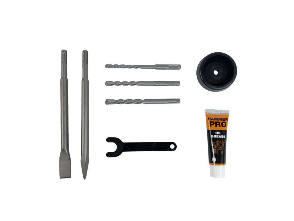 Kombinované kladivo Procraft BH1800 je určeno k práci se stavebními materiály jako jsou cihly, beton nebo kámen. Tři přepínatelné funkce zajišťují všestranné využití kladiva: vrtání, vrtání s příklepem, sekací funkce. Protože kladivo má rukojeť tvaru „D“,chrání vaši ruku před zraněním a zajišťuje pohodlné držení. Jako příslušenství lze použít SDS Plus příklepové vrtáky do betonu, ploché - špičaté nebo tvarované sekáče na stavební materiály, hadovité (spitálové) vrtáky a dláta do dřeva. Součástí dodávky je plochý a špičatý sekáč, tři vrtáky a přepravní kufr. Balení karton