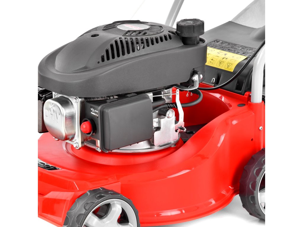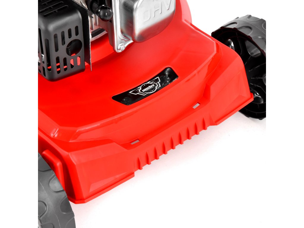 Výhody = Kvalitní benzinový motor s dostatečnou sílou = Uživatel ocení nízkou hmotnost díky plastovému šasi = Díky nízké hmotnosti se dá se sekačkou skvěle manévrovat = Vhodná pro uživatele menších pozemků či zahrad, kde je absence elektrické sítě = Pohodlná měkčená madla, která zvyšují uživatelský komfort = Možnost nastavení výšky sečení = Zadní výhoz HECHT 5406 je benzínová sekačka bez pojezdu vhodná pro pravidelné sečení udržovaných trávníků do 700 m3. Poháněna je 4-taktním OHV motorem HECHT s obsahem 80 cm3 o jmenovitém výkonu 1,3 kW /1,75 HP. Sekačka je postavena na šasi z odolného plastu, jehož zesílená konstrukce jí dává podobnou tuhost, jako mají kovová šasi, výhodou plastu je nízká hmotnost, díky čemuž celá sekačka váží pouhých 17,5 kg. Další neskonalou výhodou šasi je i odolnost proti korozi. V místech upevnění kol je šasi vyztuženo kovem. Sekačka nemá centrální nastavení výšky, kola je možné přesunout ve třech stupních jednotlivě, výška zdvihu je pak od 25 do 65 mm. To předurčuje sekačku pro použití na menších zahradách, které jsou pravidelně udržovány, díky nízké hmotnosti a malým rozměrům se s ní dobře manipuluje i okolo překážek. Posečená tráva je sbírána do 45 l koše z odolné textilie. Koš je proto lehký, snadno se s ním manipuluje, vysypávání usnadní kovové madlo na vrchní straně a velké poutko pro držení při vysypávání na zadní straně. Materiál koše je dobře propouští vzduch, tím je zajištěno jeho dokonalé plnění proudem vzduchu od speciálně navrženého nože se záběrem 41 cm, obsluha má zároveň díky průhlednosti vždy přehled o stavu naplnění koše. Startování sekačky se provádí klasicky pomocí táhla. Samotná obsluha sekačky je velice snadná, motor je pro studené starty vybaven primerem pro napumpování palivové směsi. Jediným dalším ovládacím prvkem je pak páka motoru na madle, která pokud je stisknutá udržuje motor v chodu, pokud ji uvolníte, motor zastaví. Sekačku proto zvládne snadno ovládat i méně technicky zdatná obsluha. Páka ovládání motoru je vedena po celé šířce madla, obsluha tak může kdykoli jednu ruku uvolnit a využít například k přidržení větví keřů. Madlo je navíc opatřeno velkými hvězdicovými maticemi, po jejichž uvolnění lze snadno složit a tím ušetřit místo při uskladnění sekačky. Časté dotazy k produktu = Jak pečovat o motor? = Jak se starat o sekačku? Texty uváděné jako popis funkcí produktů v žádném případě neslouží jako návod k použití. Při používání prosím postupujte v souladu s uživatelským manuálem, který je součástí dodávky produktu.Při platbě penězi je možné dostat zajímavou nabídku neboli akční cenu a tu Vám rádi uděláme když napíšete na info@megabike-cyklo.cz