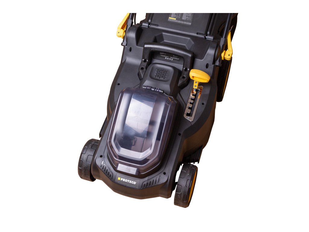 Zvýhodněná nabídka akumulátorové sekačky s 2 akumulátory 4000 mAh a duální nabíječkou. Sekačka se záběrem sečení 380 mm je skvělým pomocníkem při údržbě menších zahrad do 500 m2. Je vybavena moderním bezuhlíkovým motorem, díky němuž pracuje s maximální efektivitou při co nejmenším zatížení baterie (pomaleji se vybíjí) a také stroj mnohem méně opotřebovává než v případě levnější uhlíkové varianty (delší životnost). Pro co nejvyšší bezpečnost práce má sekačka implementovaný bezpečnostní spínač, který brání nečekanému zapnutí čepele. Tělo sekačky je vyrobené z odolného a pružného plastu, který bez problému ustojí větší nárazy uvnitř bubnu, je však zároveň dostatečně lehký na to, aby se nepřetěžovaly baterie a rovněž manipulace se strojem byla co nejkomfortnější. Výšku sečení lze snadno pomocí páky nastavit do 6 poloh v rozmezí 25-75 mm. Díky plnému využití 2 x 20 V akumulátorů sekačka dosahuje vysokého výkonu a rovněž delší dobu provozu, než v případě sekaček s jedním akumulátorem. Nejen sousedé také ocení velmi tichý chod sekačky, který je oproti benzínovým i elektrickým sekačkám neporovnatelný. Li-Ion akumulátor (2x): Jmenovité napětí: 20 V Kapacita: 4000 mAh (4 Ah) Nabíječka: Pro akumulátory Li-Ion 20 V Doba nabíjení: cca 35 minut Pro dva akumulátory Výhody a charakteristické znaky: - 40 V bezuhlíkový elektromotor pro silný výkon a dlouhou životnost - Počet otáček až 3400 ot./min - Záběr sečení 380 mm - Nastavitelná výška sečení v 6 polohách (25-75 mm) - Tichý chod elektromotoru - 40 l sběrný koš - Nadstandartní výkon - nutno využít 2 akumulátory 20 V - Součástí PROTECO Aku programu - jedna baterie sedí na více druhů nářadí! - Výkonný Li-Ion akumulátor s 3stupňovým ukazatelem stavu nabití - Nabíječka s LED ukazatelem nabití a automatickým vypnutím nabíjení - Protiskluzové pogumované nožičky u nabíječky - Možnost upevnění nabíječky na stěnu Doporučení: Žací nůž je z výroby ošetřen protikorozní povrchovou úpravou. Před prvním použitím jej doporučujeme přeostřit.Při platbě penězi je možné dostat zajímavou nabídku neboli akční cenu a tu Vám rádi uděláme když napíšete na info@megabike-cyklo.cz