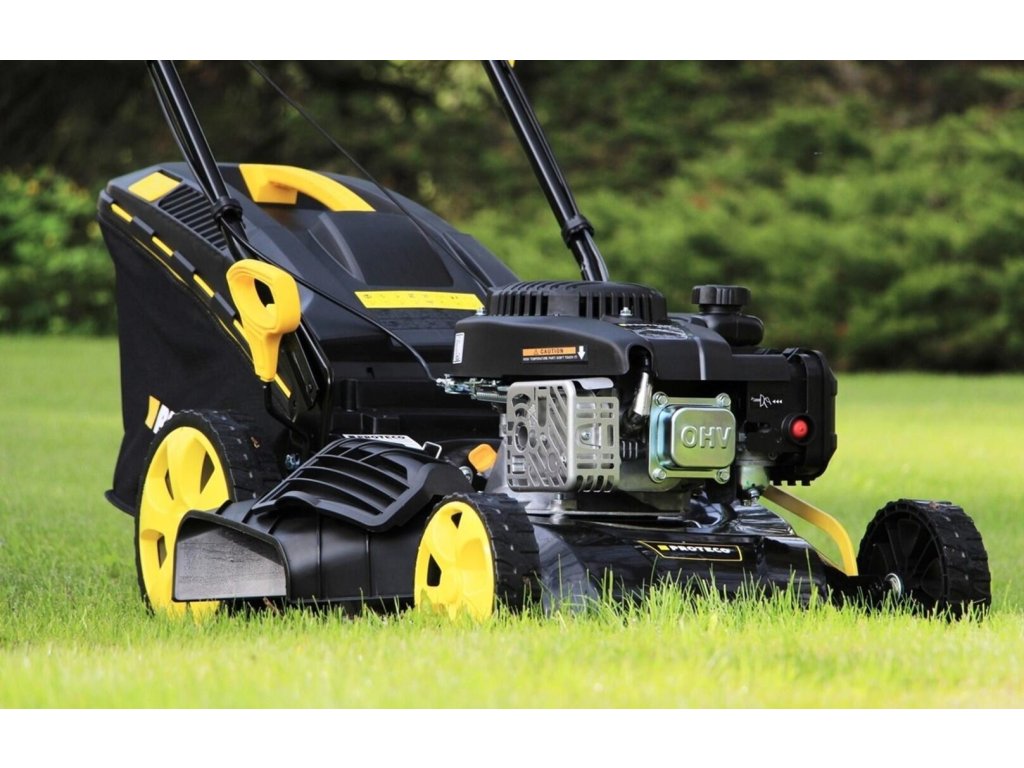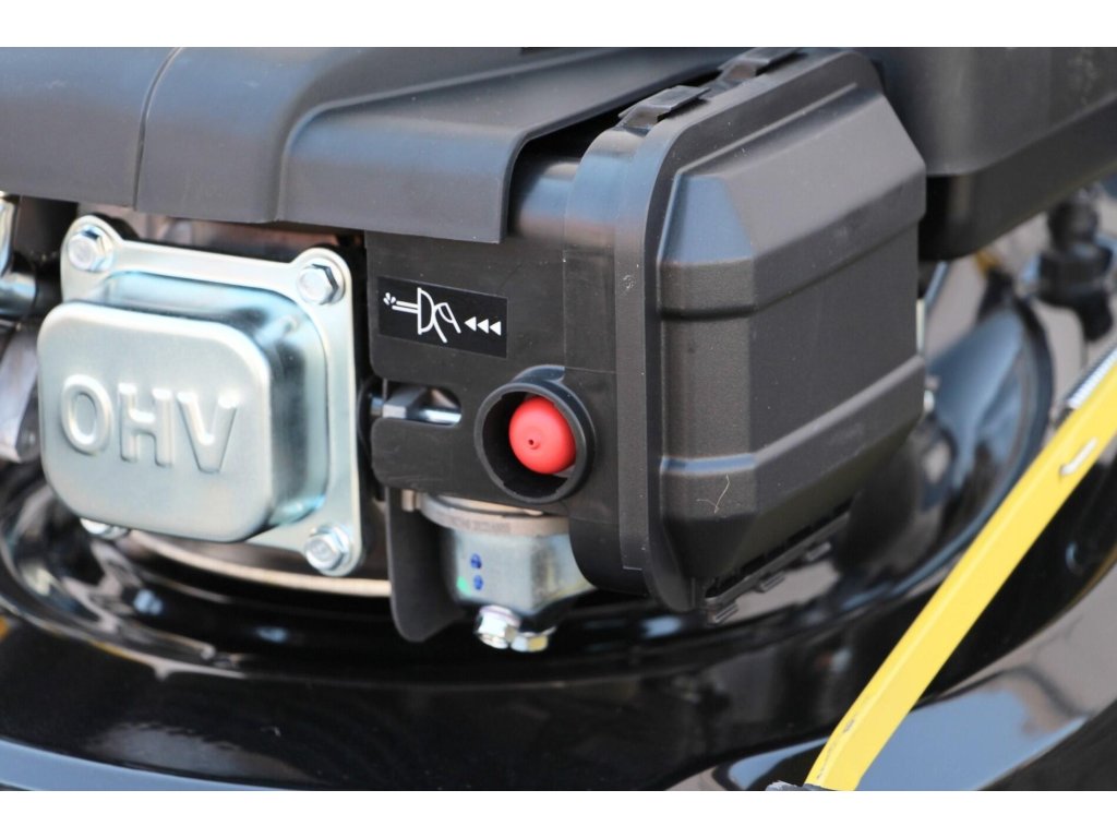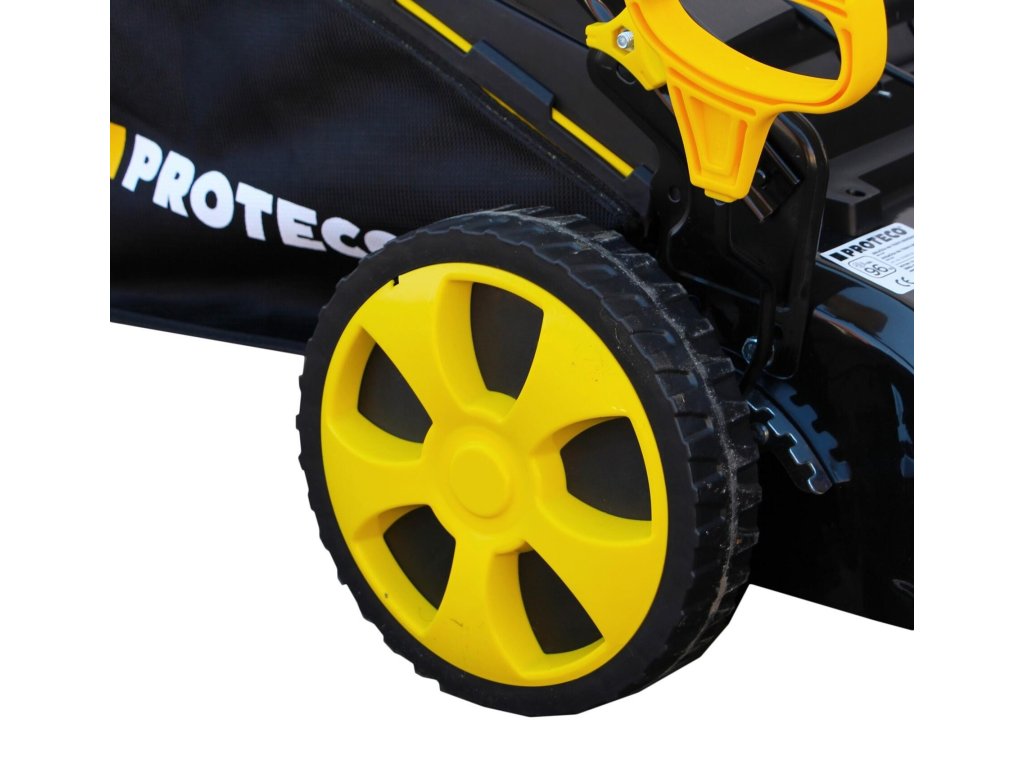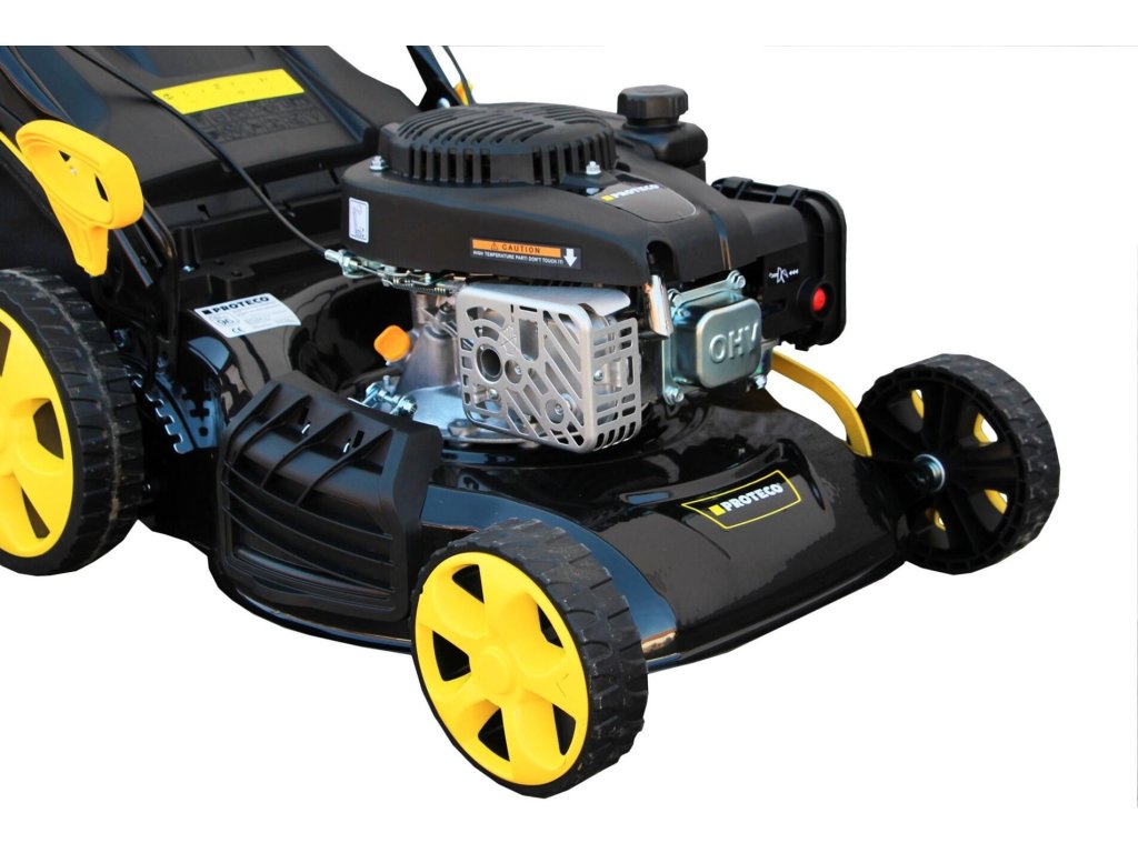 Benzinová sekačka PROTECO se záběrem 46 cm je zahradní pomocník s vynikajícím výkonem 2,5 kW a snadnou obsluhou. Výšku sečení si nastavíte pomocí páky v 8 možných výškách od 25 - 75 mm. Se záběrem 46 cm a objemným 62 l sběrným košem zvládnete posekat trávník snadno a rychle. Sekačka vyniká svým kvalitním zpracováním, výbavou a stejně tak i designem. Díky objemnému sběrnému koši už nemusíte každou chvilku běhat vysypat trávu. Velkou předností této sekačky je variabilnost použití, což znamená že sekačka s pojezdem umí sbírat posekanou trávu do koše, mulčovat, a nebo může vyhazovat trávu bočním i zadním deflektorem ven. Doporučení: Žací nože jsou vytvarované s povrchovou úpravou, před prvním použitím doporučujeme jejich přeostření. Výhody a charakteristické znaky - 8 pozic výšky sečení (25-75 mm) - Ergonomická rukojeť - Šíře záběru 46 cm - Vlastní pojezd a koš s objemem 62 l - Sečení i mulčování - Motor OHV - Indikátor stavu naplnění koše - 3 pozice nastavení výšky rukojeti - Kuličkové ložiska pojezdových kol - Rychlospojka pro mytí sekačky - Pumpa paliva - Motor OHV, výrobce motoru LONCIN Specifikace motoru: - Benzínový motor - Motor OHV, výrobce motoru LONCIN - Výkon motoru: 2,5 kW, 3000 ot./min - Maximální točivý moment: 7,5 Nm - Maximální objem oleje: 0,5l - Maximální objem palivové nádrže: 0,9 lPři platbě penězi je možné dostat zajímavou nabídku neboli akční cenu a tu Vám rádi uděláme když napíšete na info@megabike-cyklo.cz