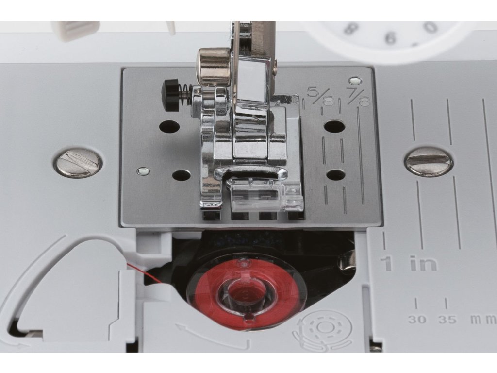 - průhlednou krytkou vidíte, kolik nitě vám zůstává na cívce